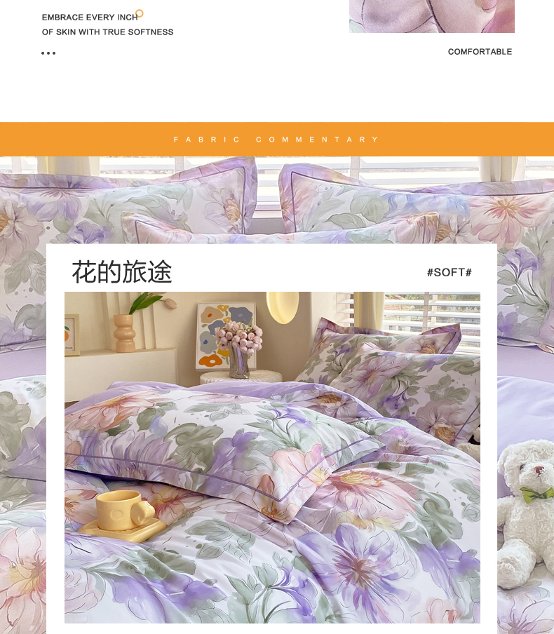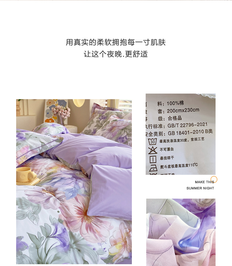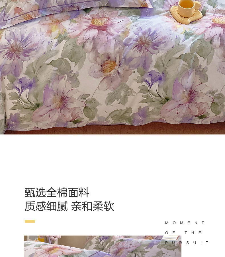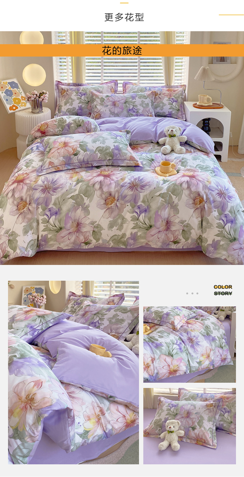 商品名称:星期三 2025年4月新款铂金全棉纯棉13372四件套 加微信有会员价 花的旅途