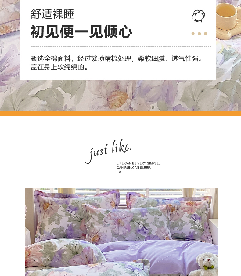星期三 2025年4月新款铂金全棉纯棉13372四件套 加微信有会员价 花的旅途