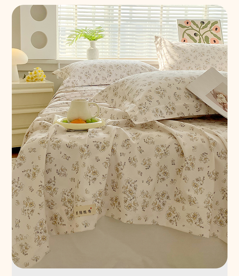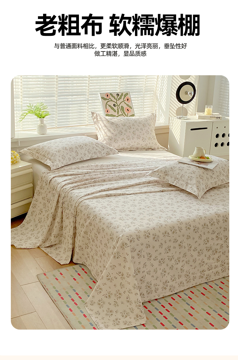 商品名称:凯磊2025新款老粗布印花单品床单床单单件 淡彩花语