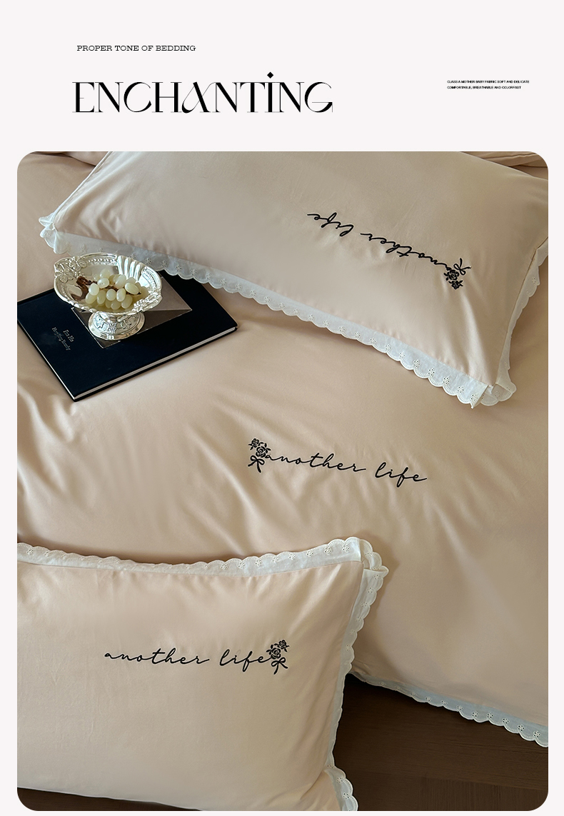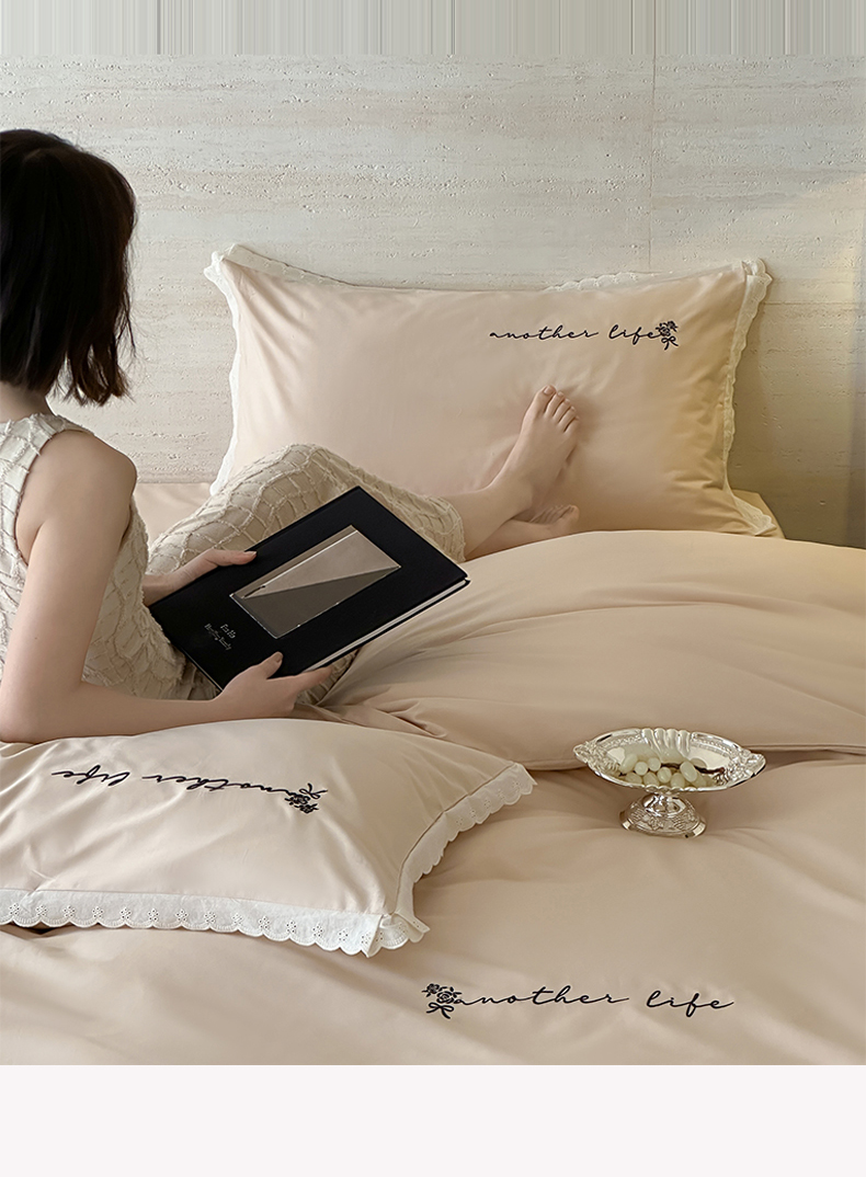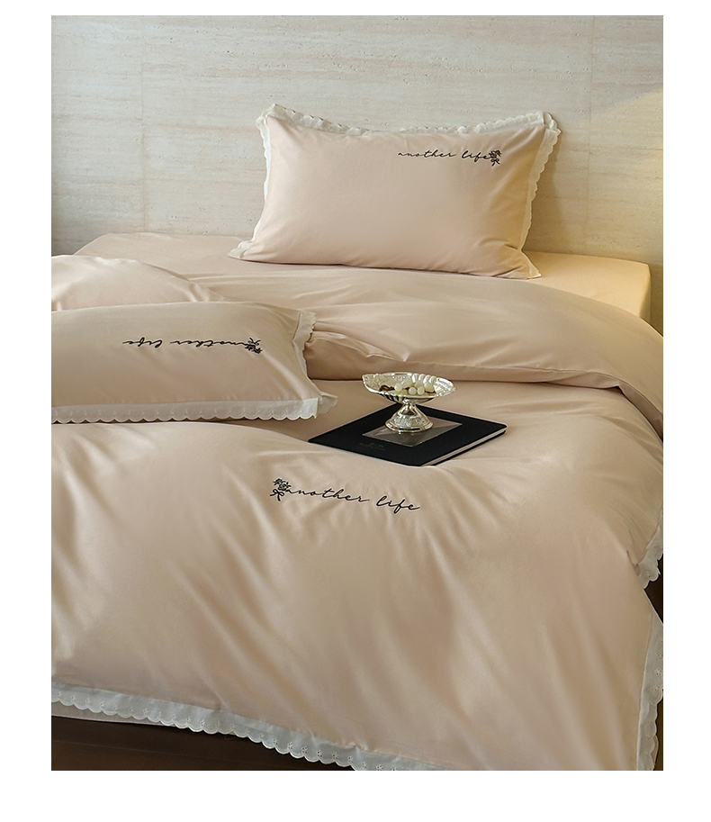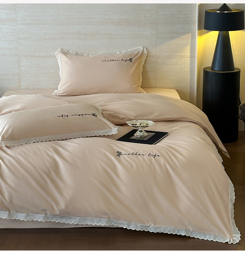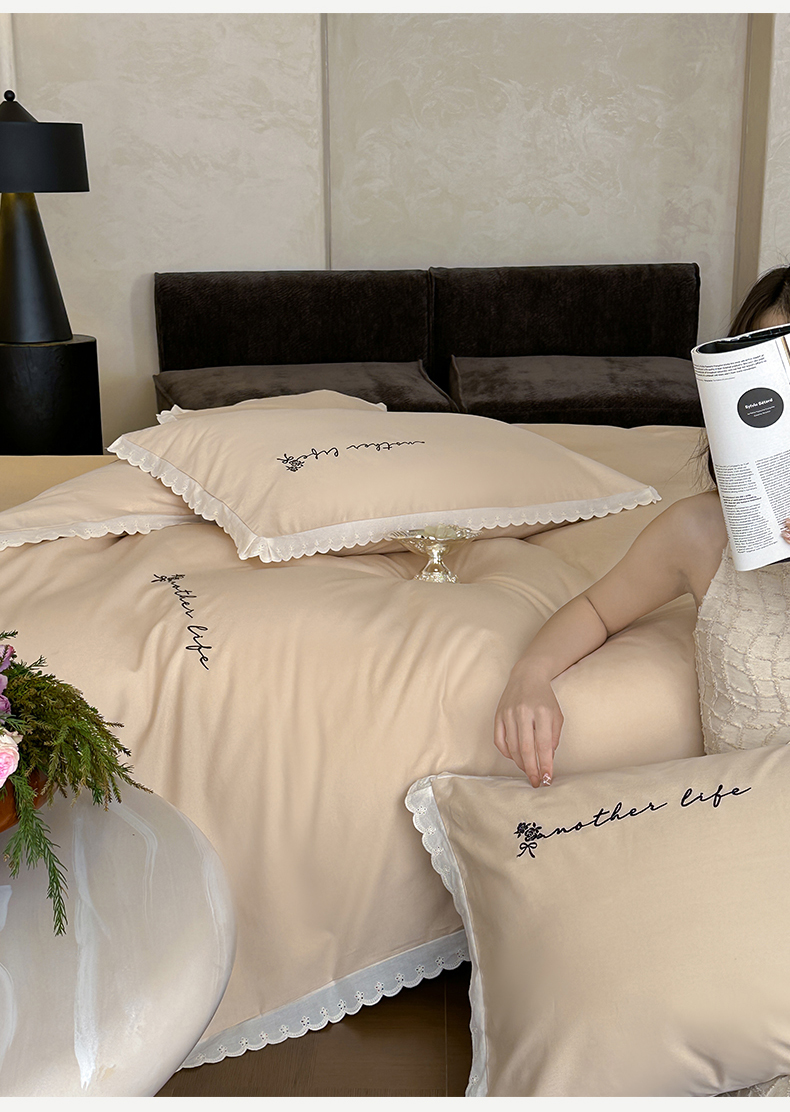 名品优仓 2025新款纯棉水洗棉双层纱提花韩版花边四件套-约定 约定-奶茶咖