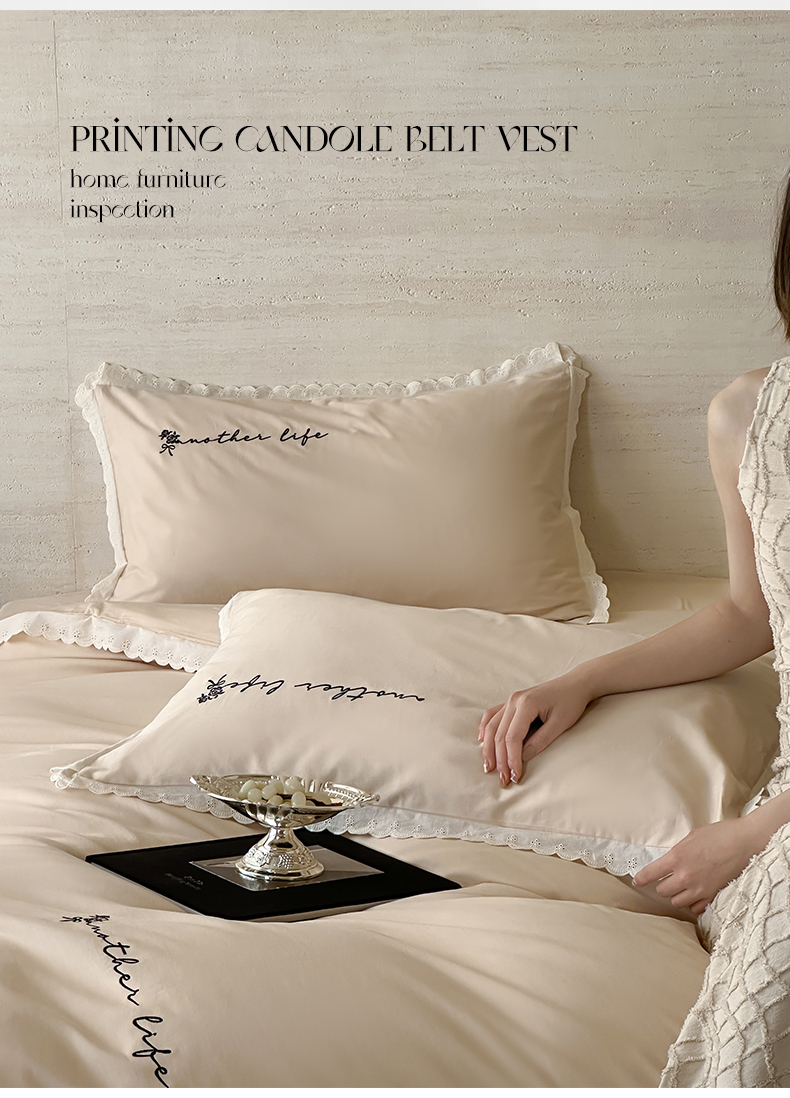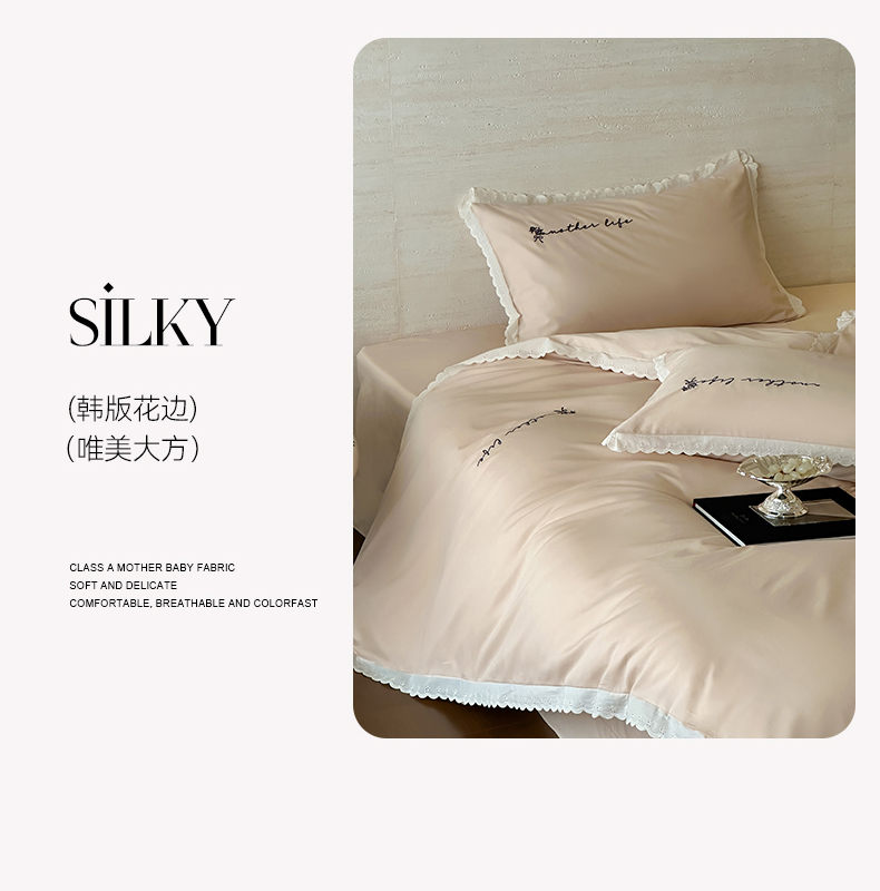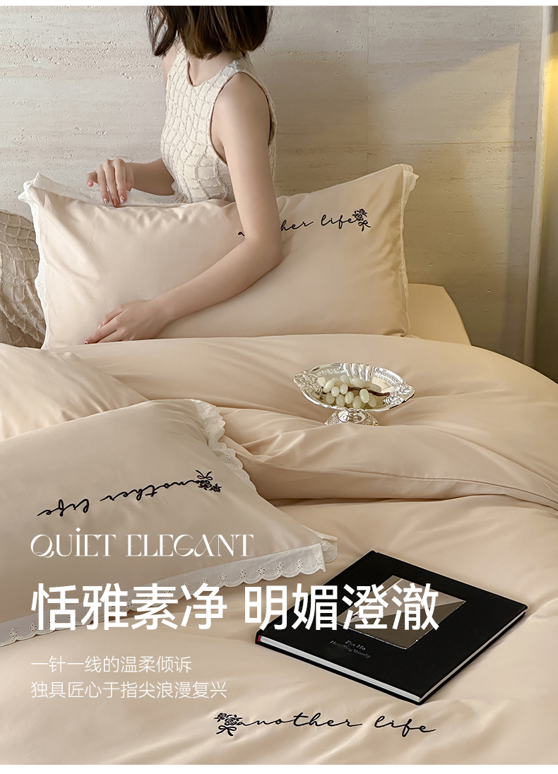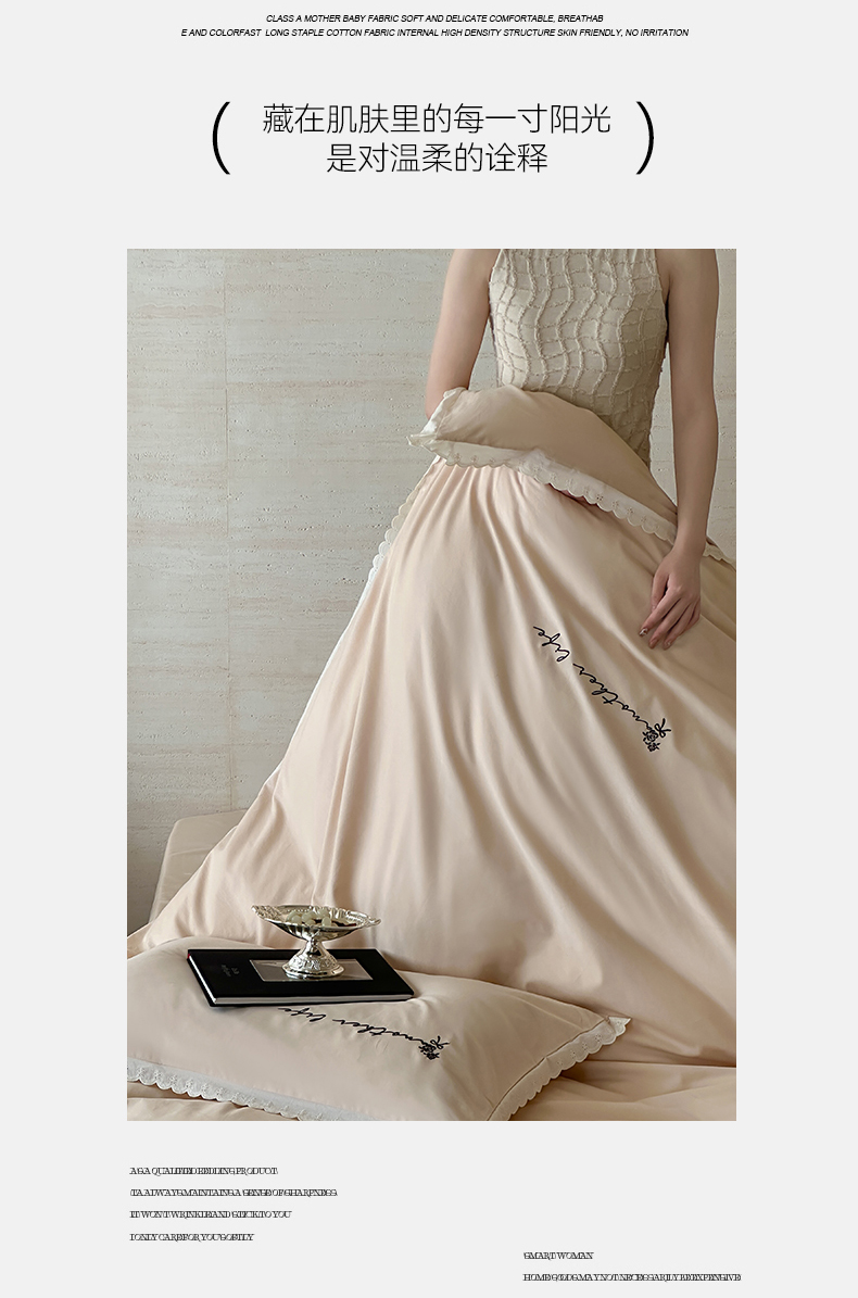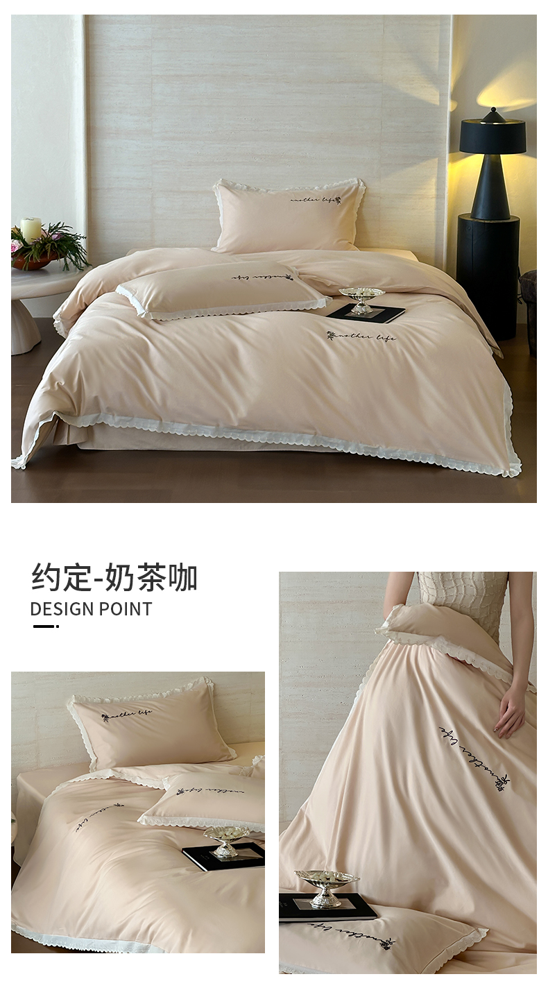 商品名称:名品优仓 2025新款纯棉水洗棉双层纱提花韩版花边四件套-约定 约定-奶茶咖