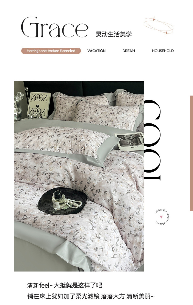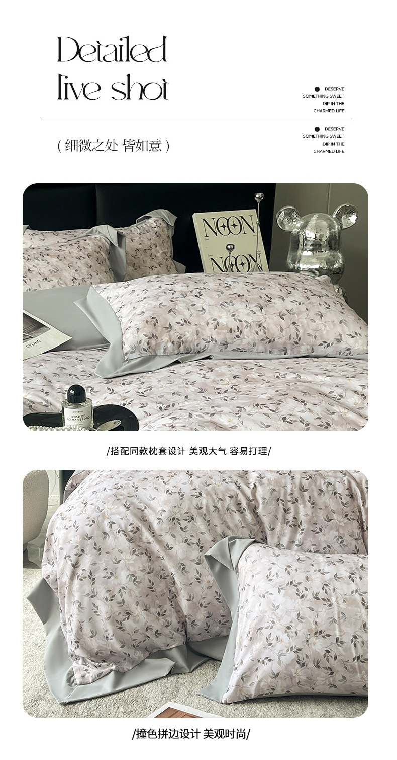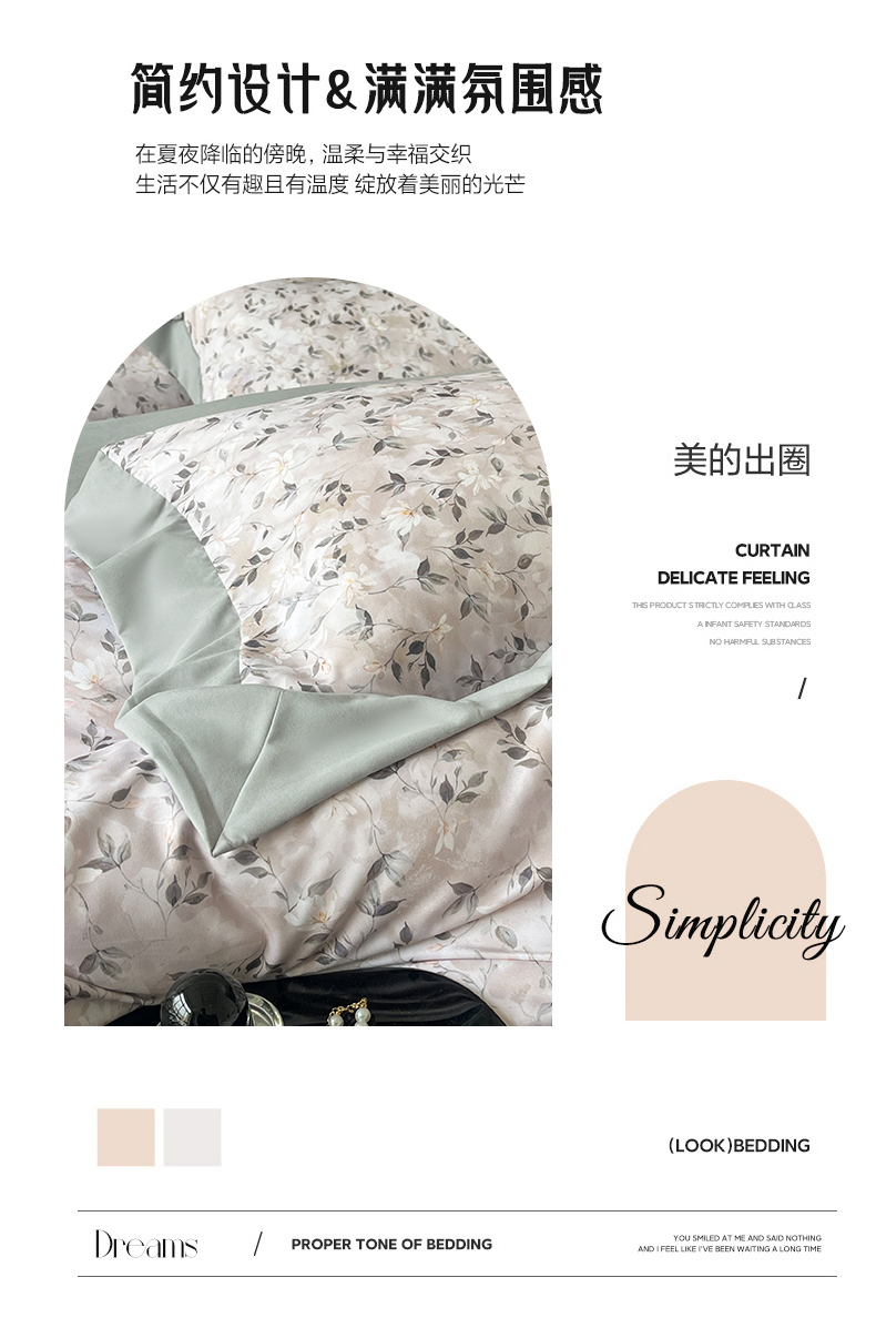 KA家纺 2025新款A类轻奢大拼角亲肤棉数码印花云朵棉四件套 森野