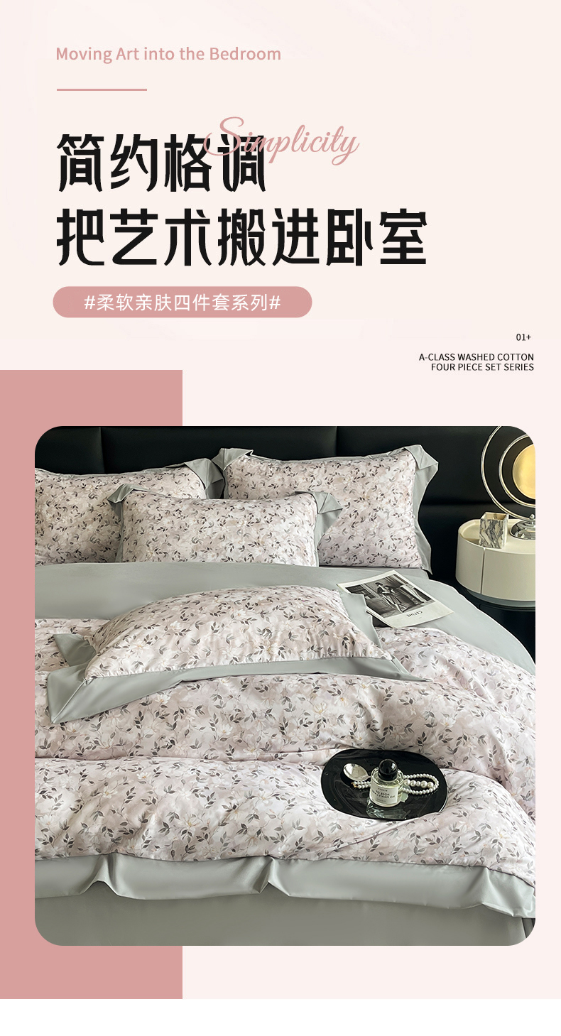 商品名称:KA家纺 2025新款A类轻奢大拼角亲肤棉数码印花云朵棉四件套 森野