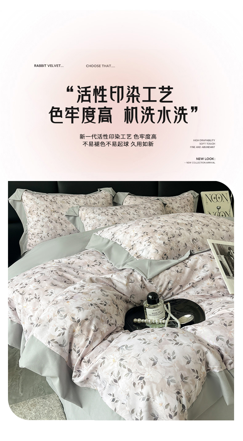 (总)KA家纺 2025新款秋冬兔毛边工艺款兔毛牛奶绒四件套,豹闪闪,蝶飞飞,红彤彤,花满满,洛可可,情浓浓,心乱乱