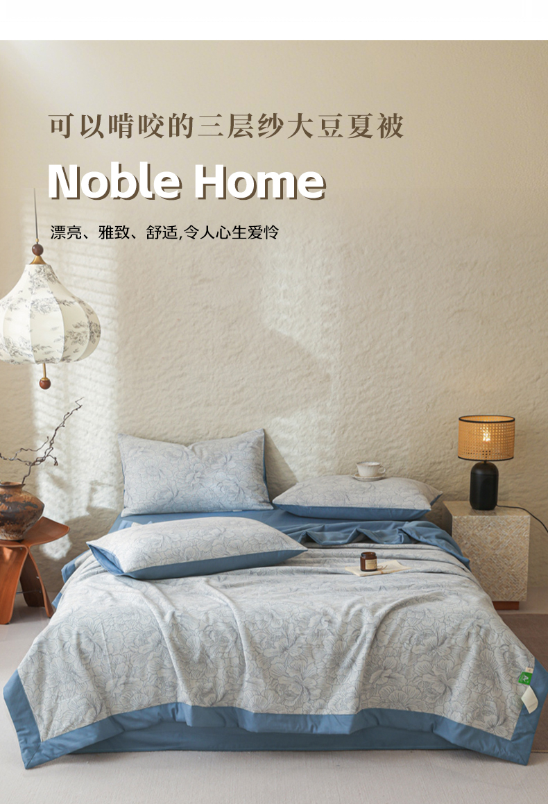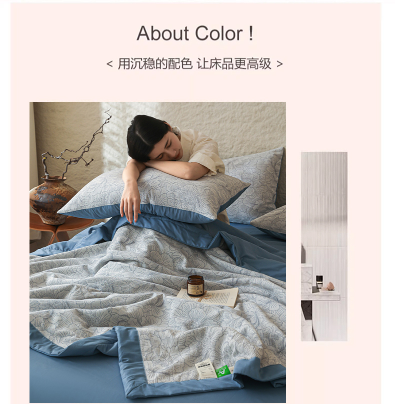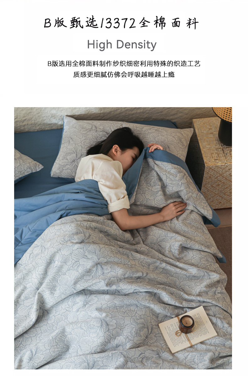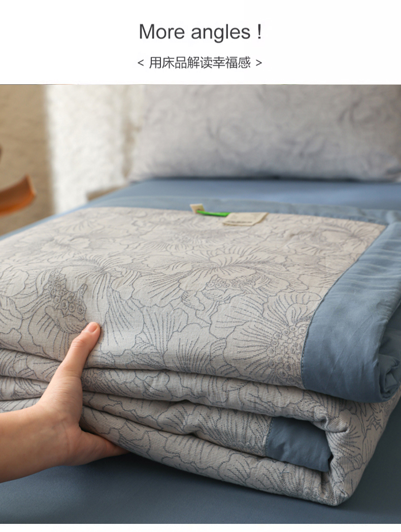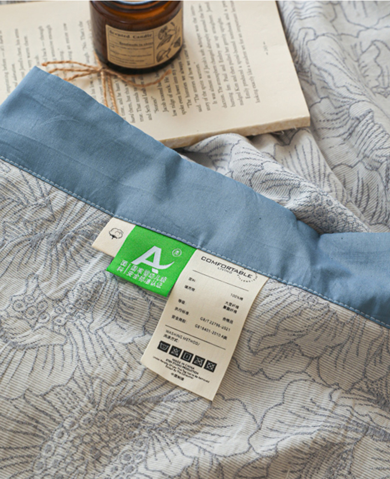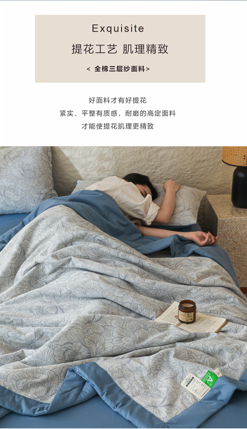 当前位置: 91家纺网 > 商品网购 > 床品套件 > 四件套 > 提花四件套 > 眠博士 2025新款A类全棉包边三层纱提花夏被四件套 包边三层纱夏被-山茶花-灰蓝
