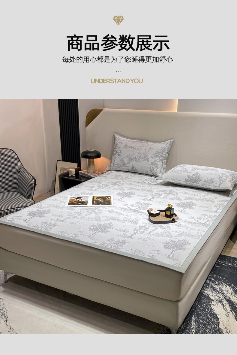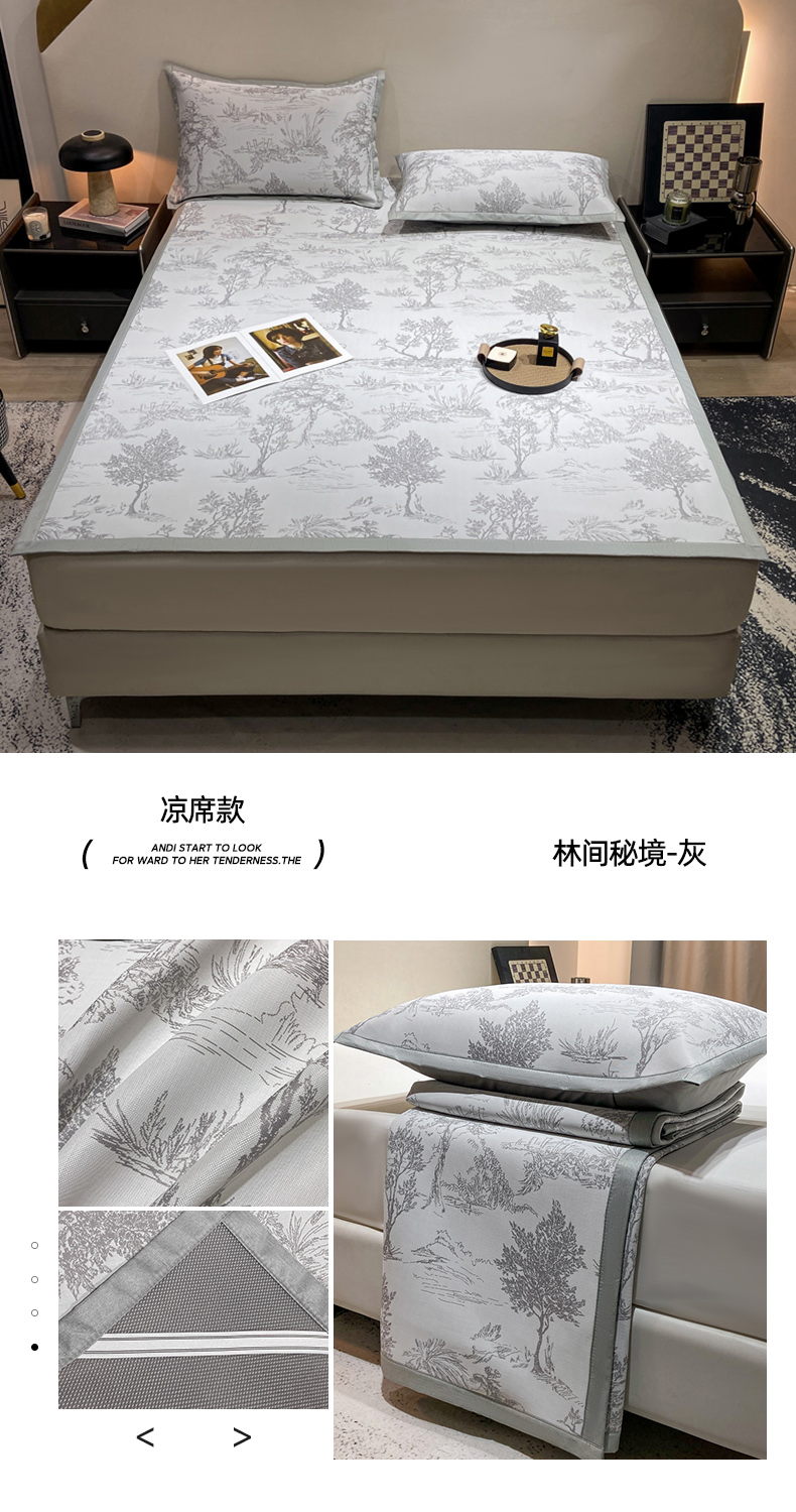 当前位置: 91家纺网 > 商品网购 > 床上用品 > 凉席 > 冰丝席 > 蝶帕家纺 2025新品A类PE高分子乙纶复合三明治提花冰丝席 林间秘境-灰 床席