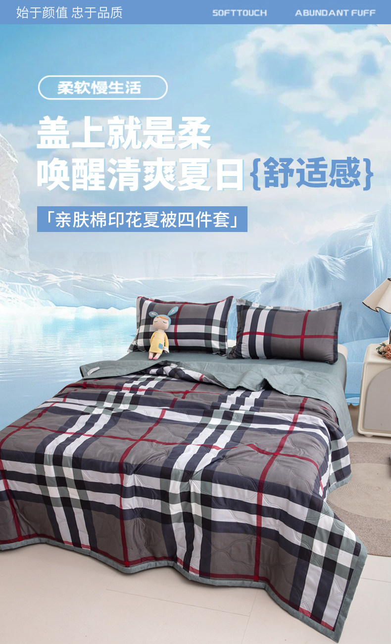 商品名称:乐居坊2025新款亲肤舒适印花芦荟棉夏凉被四件套 加州旅馆