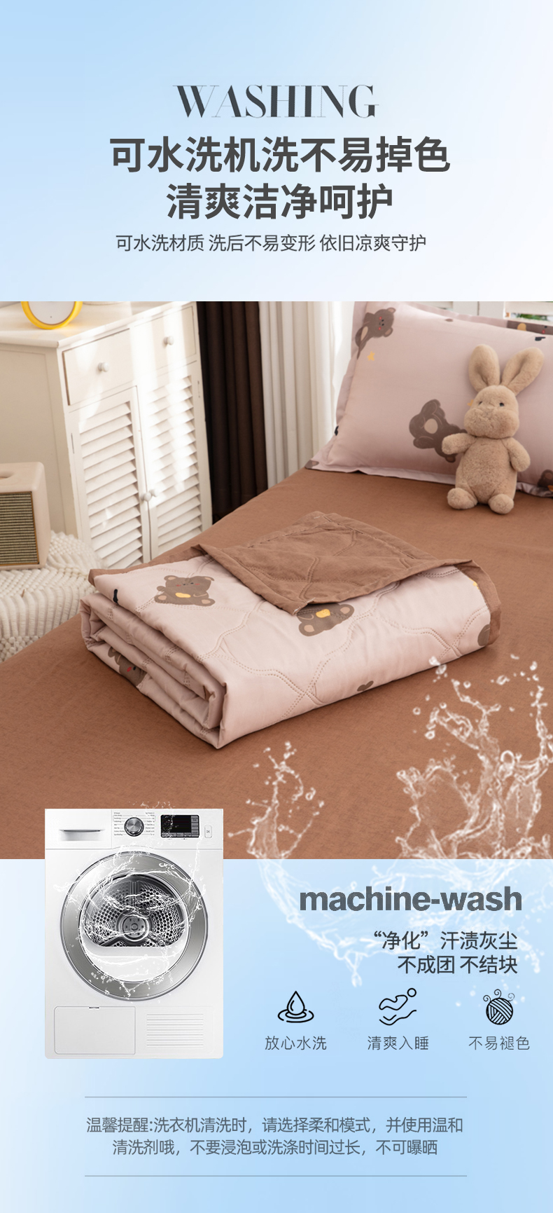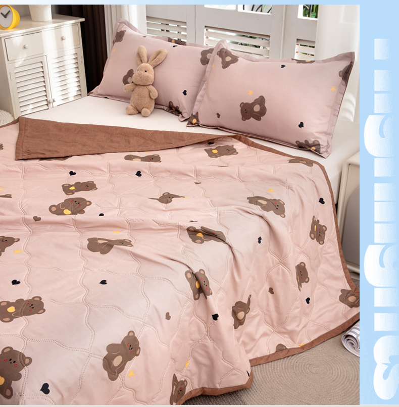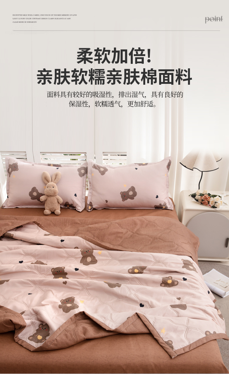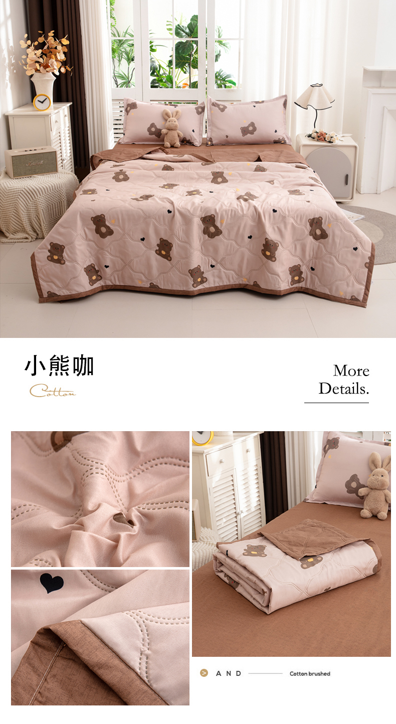 乐居坊2025新款亲肤舒适印花芦荟棉夏凉被四件套 小熊咖