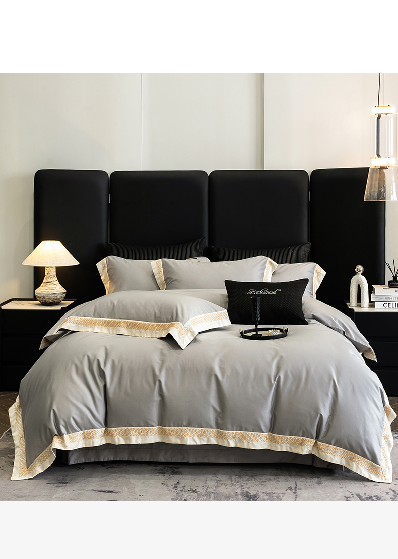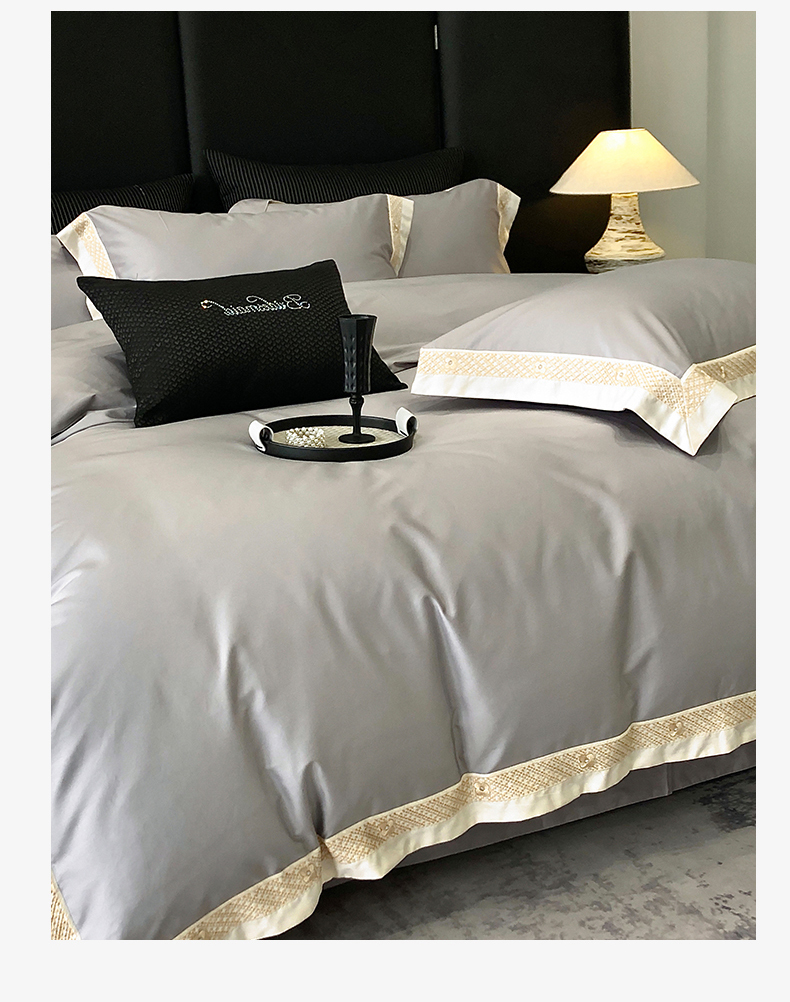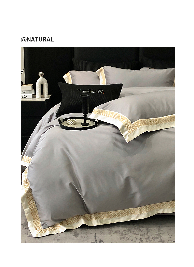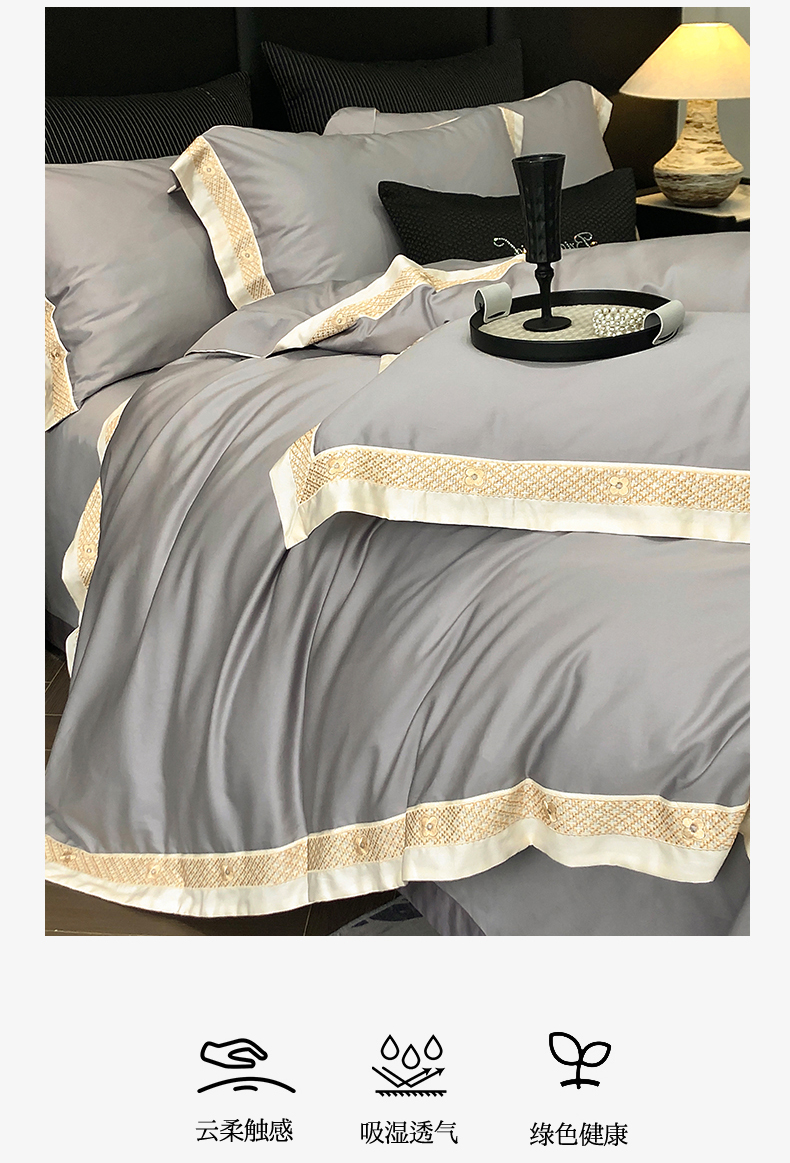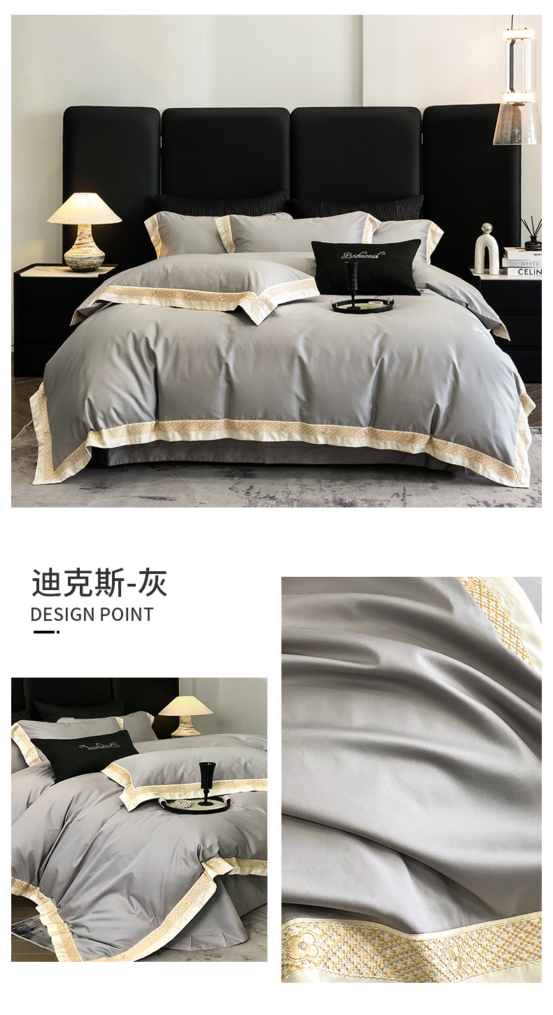 商品名称:2025新款全棉长绒棉刺绣四件套-迪克斯 迪克斯-灰