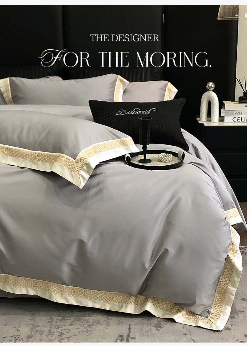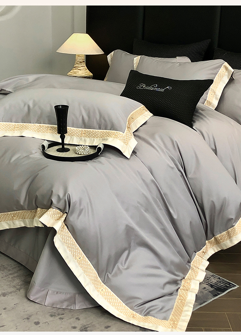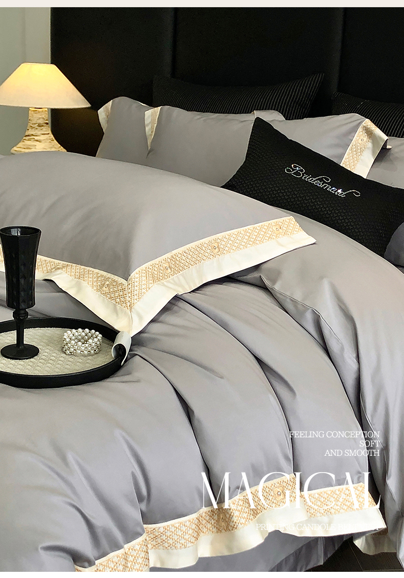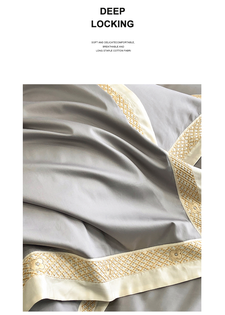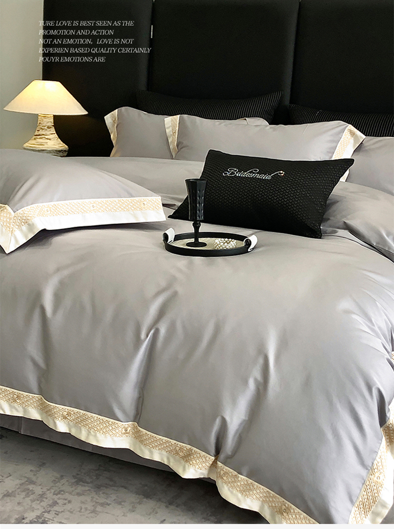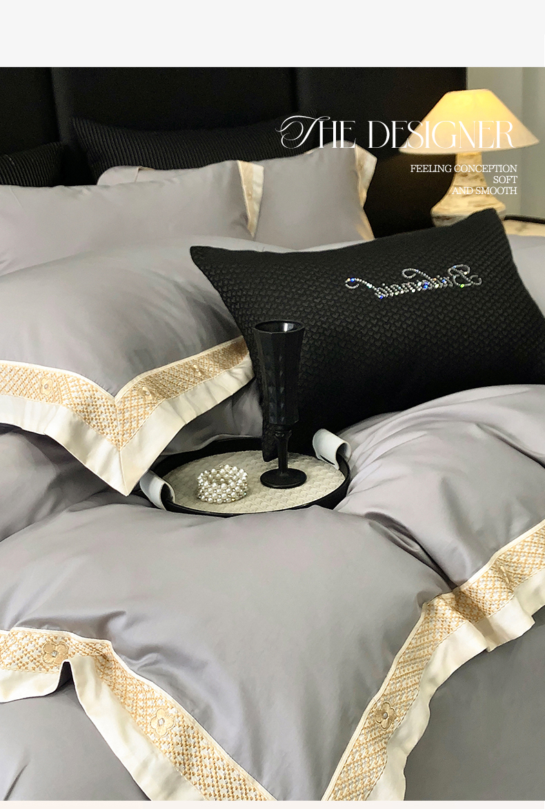 商品名称:2025新款全棉长绒棉刺绣四件套-迪克斯 迪克斯-灰