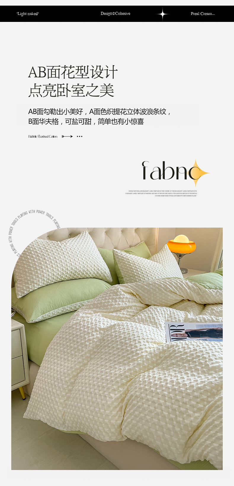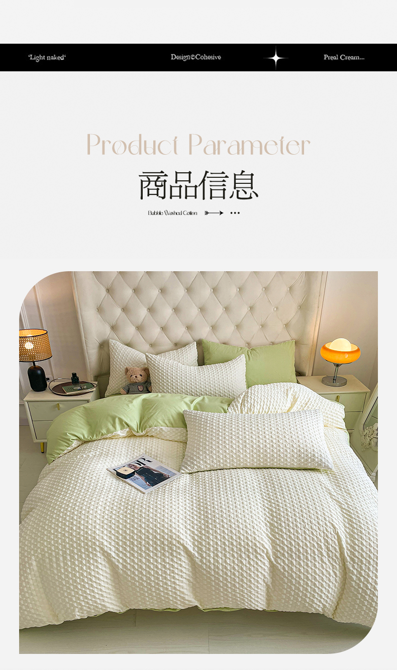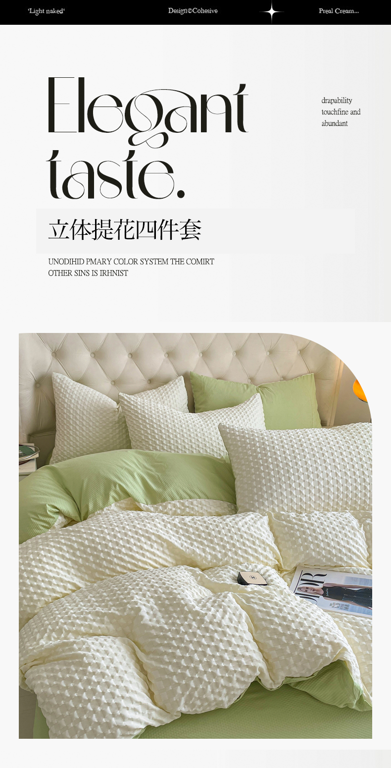 商品名称:悦织湾家纺 2025新款色织提花立体四件套 提花水立方奶白果绿