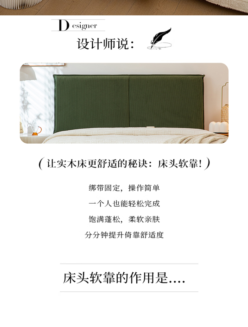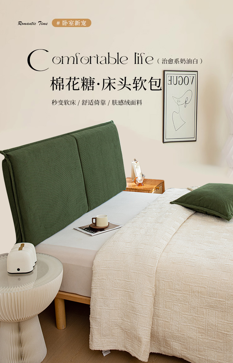 沐沐家纺 2026新款灯芯绒床头平板大靠背 白色