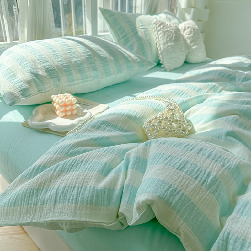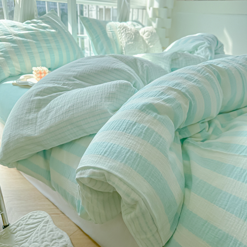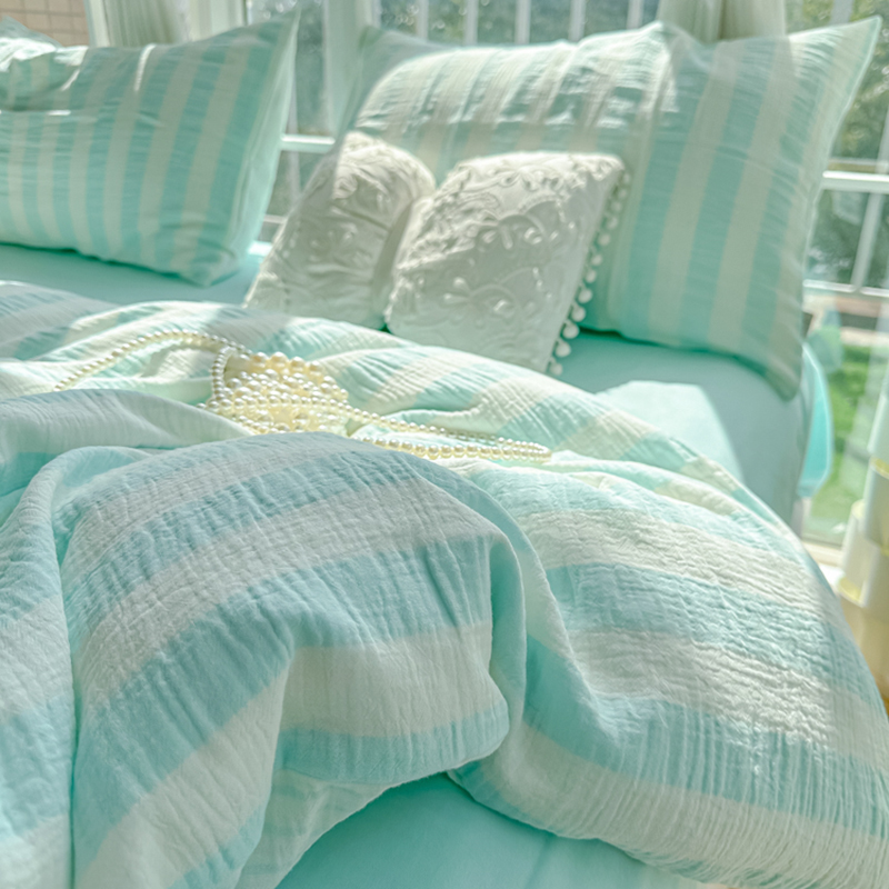 当前位置: 91家纺网 > 商品网购 > 床品套件 > 四件套 > 水洗棉四件套 > 悦织湾家纺 2025新款水洗棉亲肤云朵条纹四件套 云朵条纹青绿