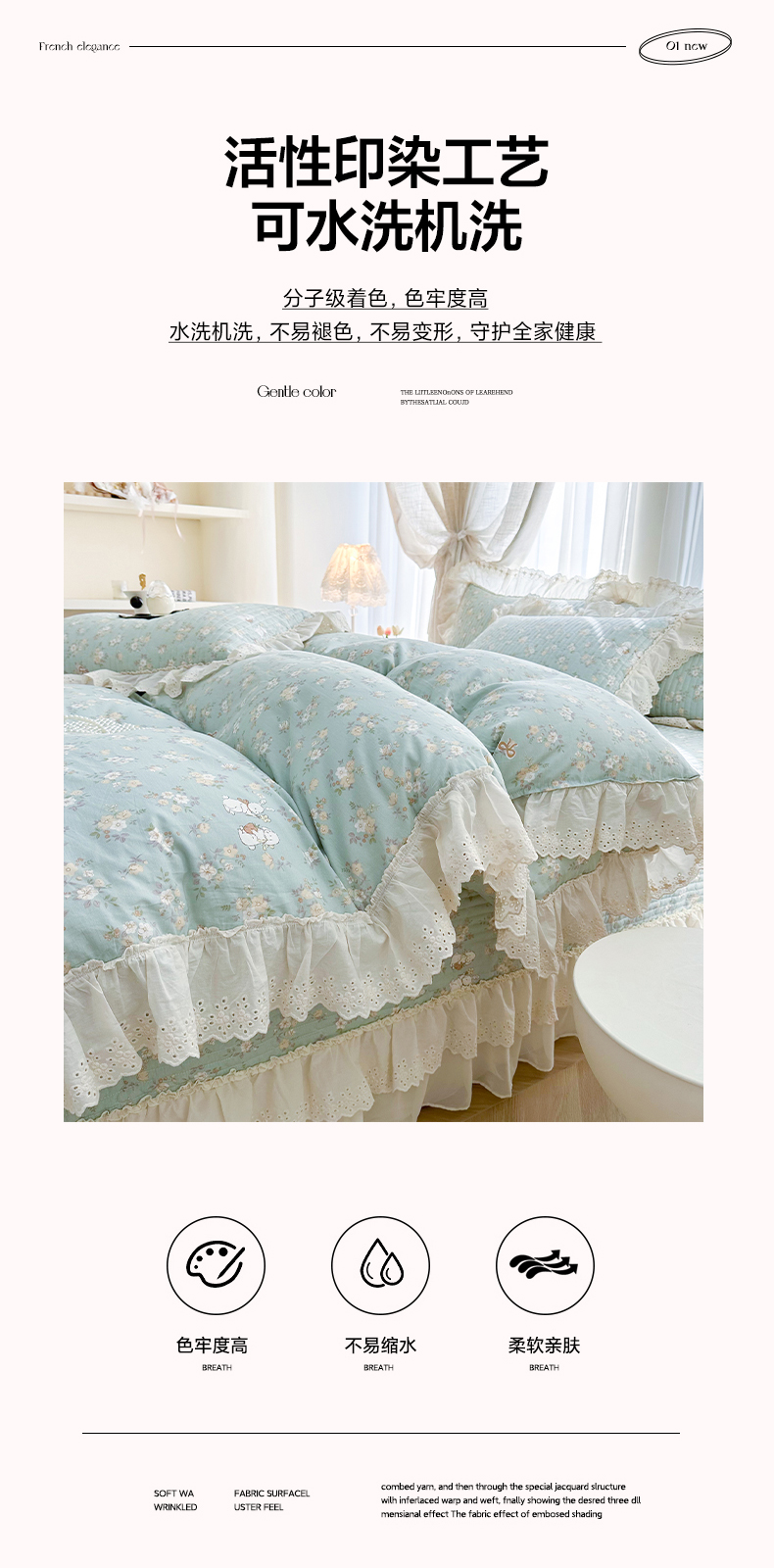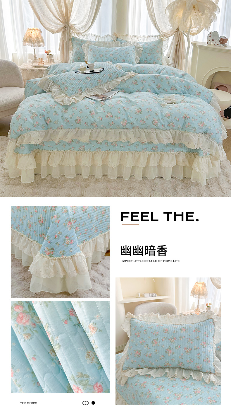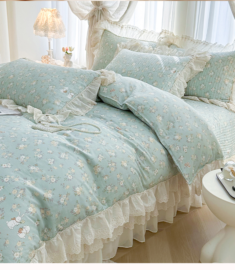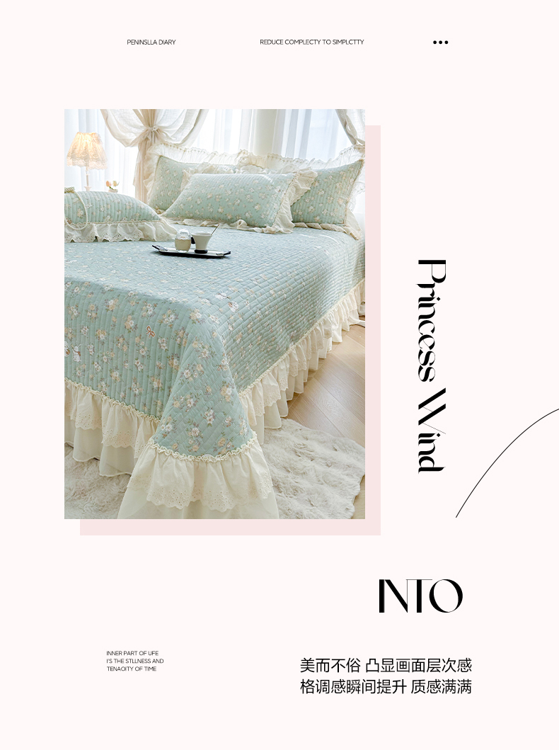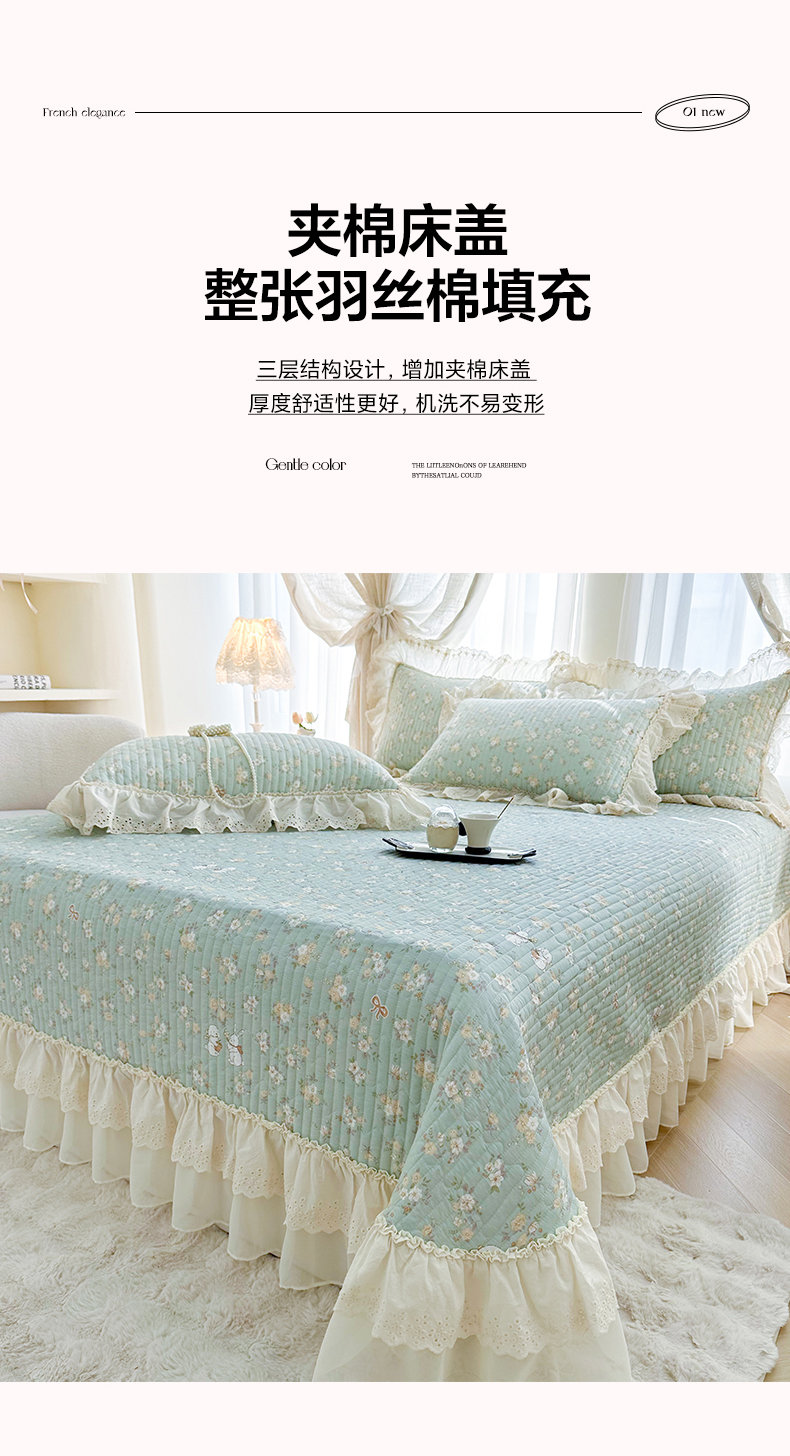 当前位置: 91家纺网 > 商品网购 > 床品套件 > 四件套 > 全棉普通四件套 > 罗艺轩 2025新款全棉印花花边床盖四件套 花蜜-绿