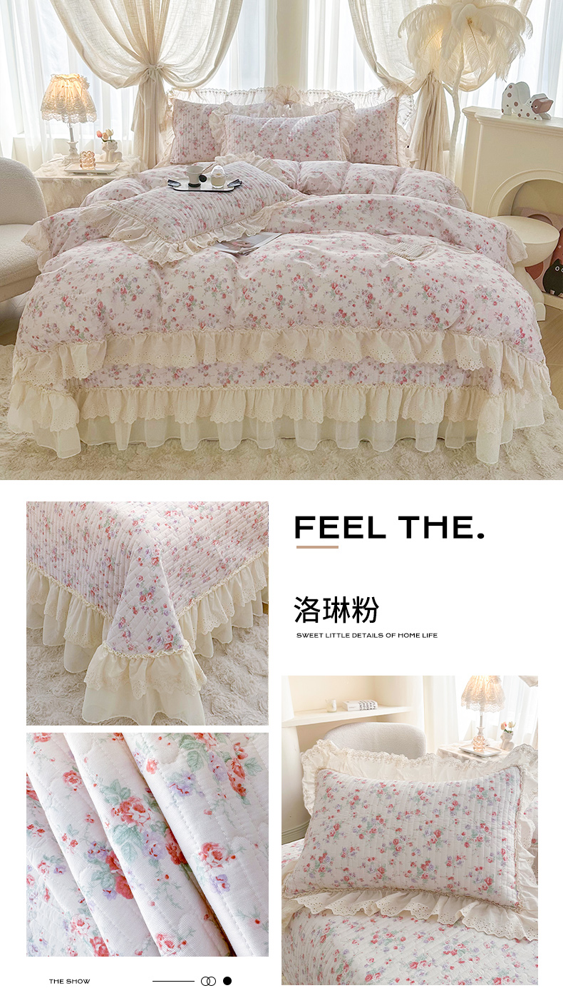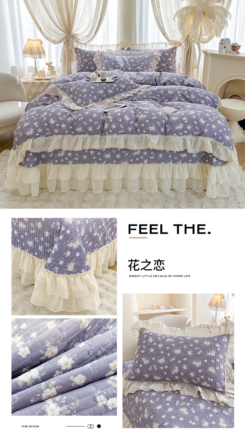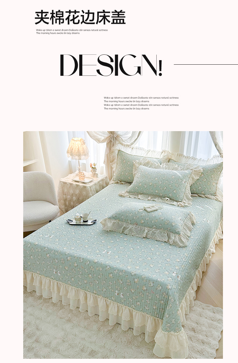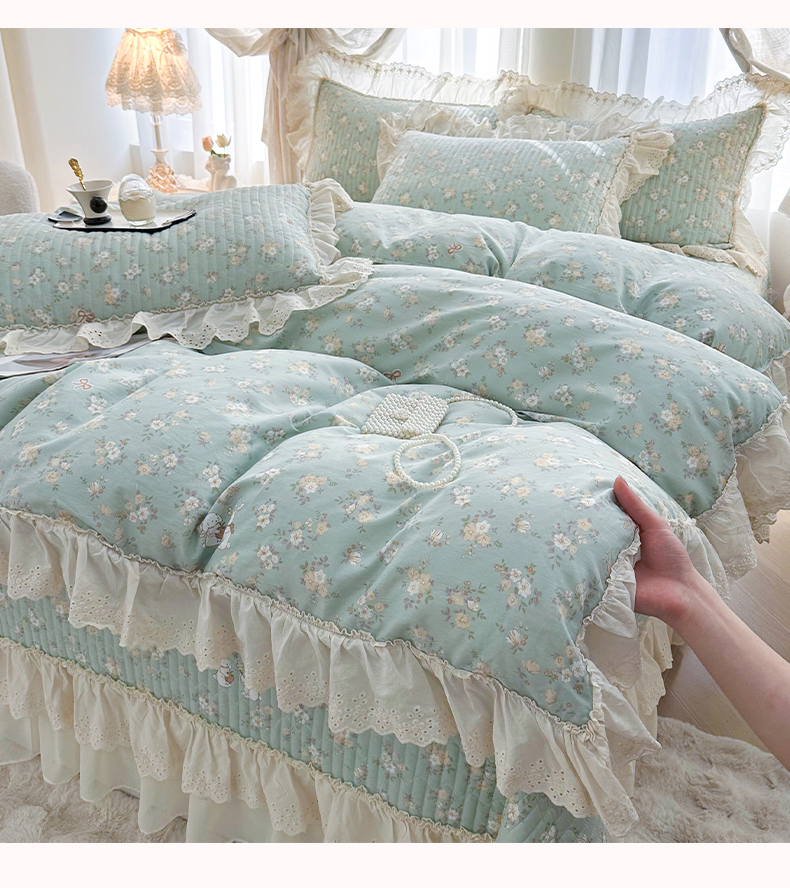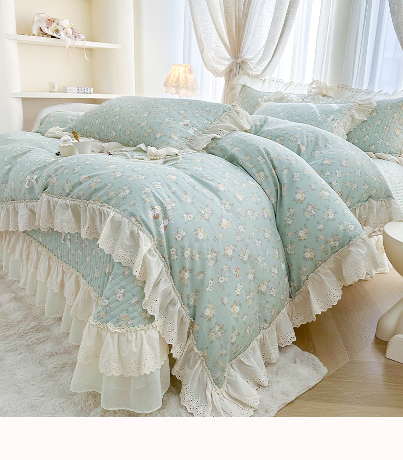 当前位置: 91家纺网 > 商品网购 > 床品套件 > 四件套 > 全棉普通四件套 > 罗艺轩 2025新款全棉印花花边床盖四件套 花蜜-绿