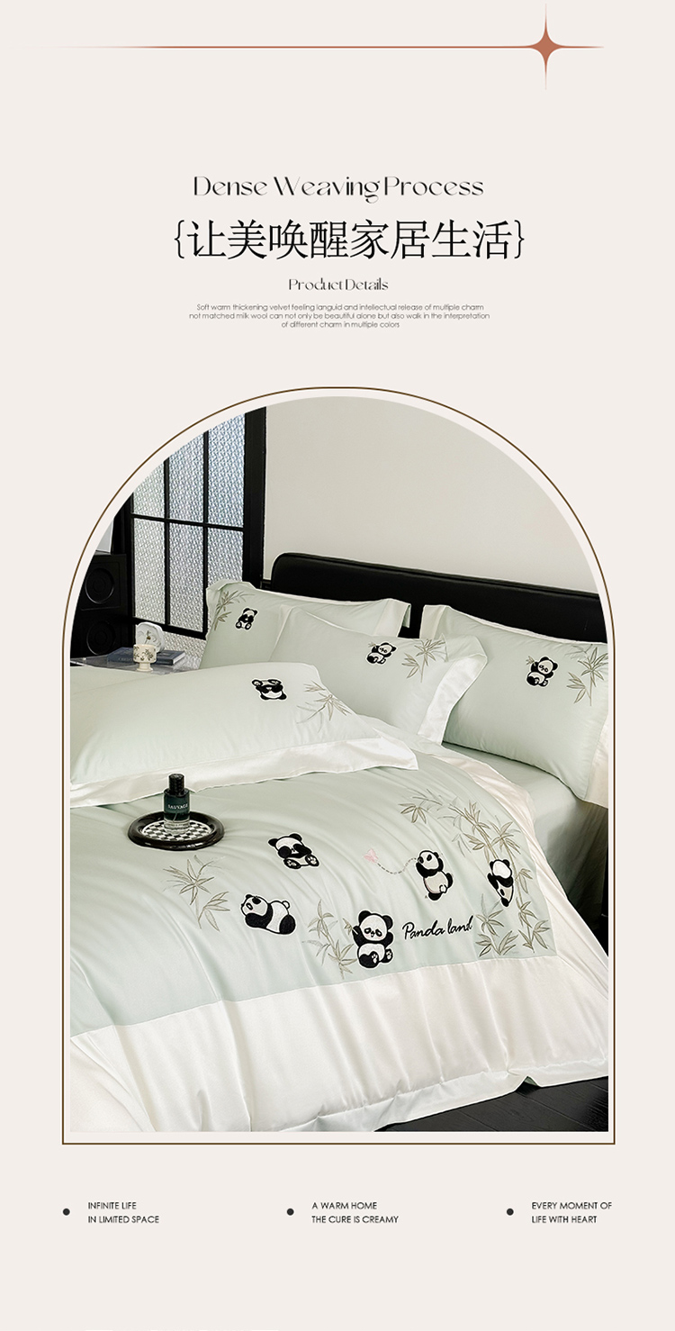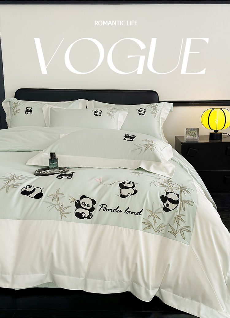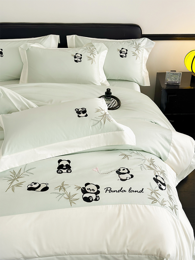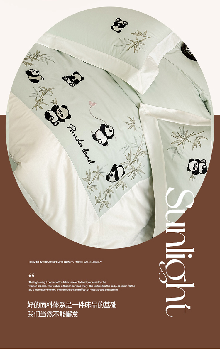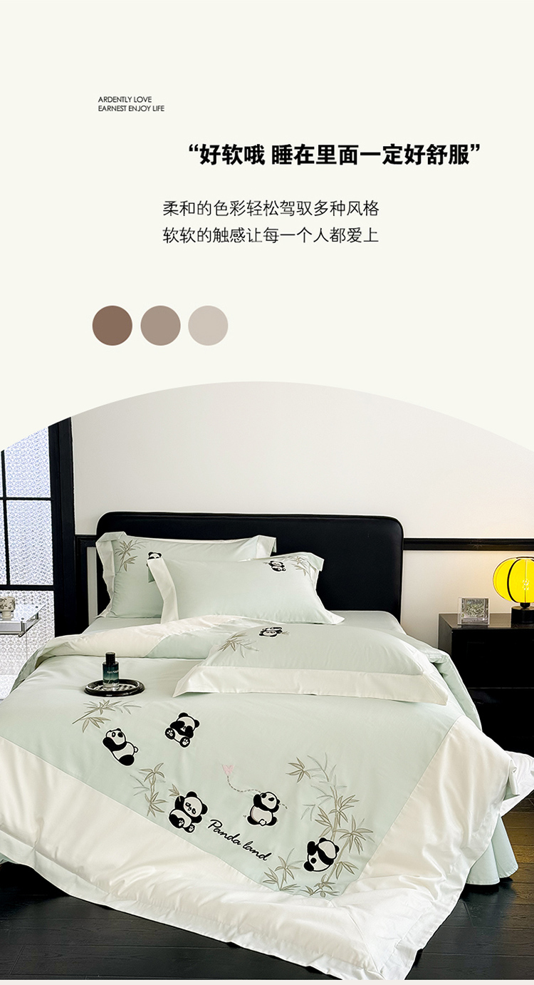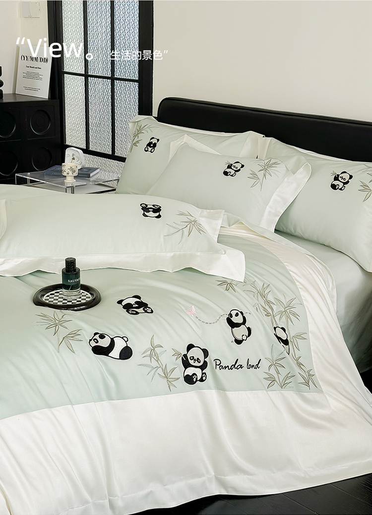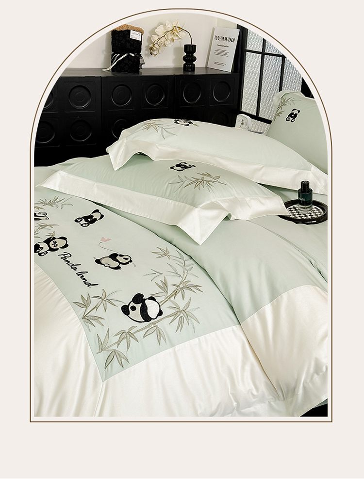 当前位置: 91家纺网 > 商品网购 > 床品套件 > 四件套 > 贡缎全棉四件套 > 春夏新品50*50S贡缎长绒棉刺绣四件套纯棉床单床笠高档礼盒装 清新绿-熊猫乐园-贡缎长绒棉