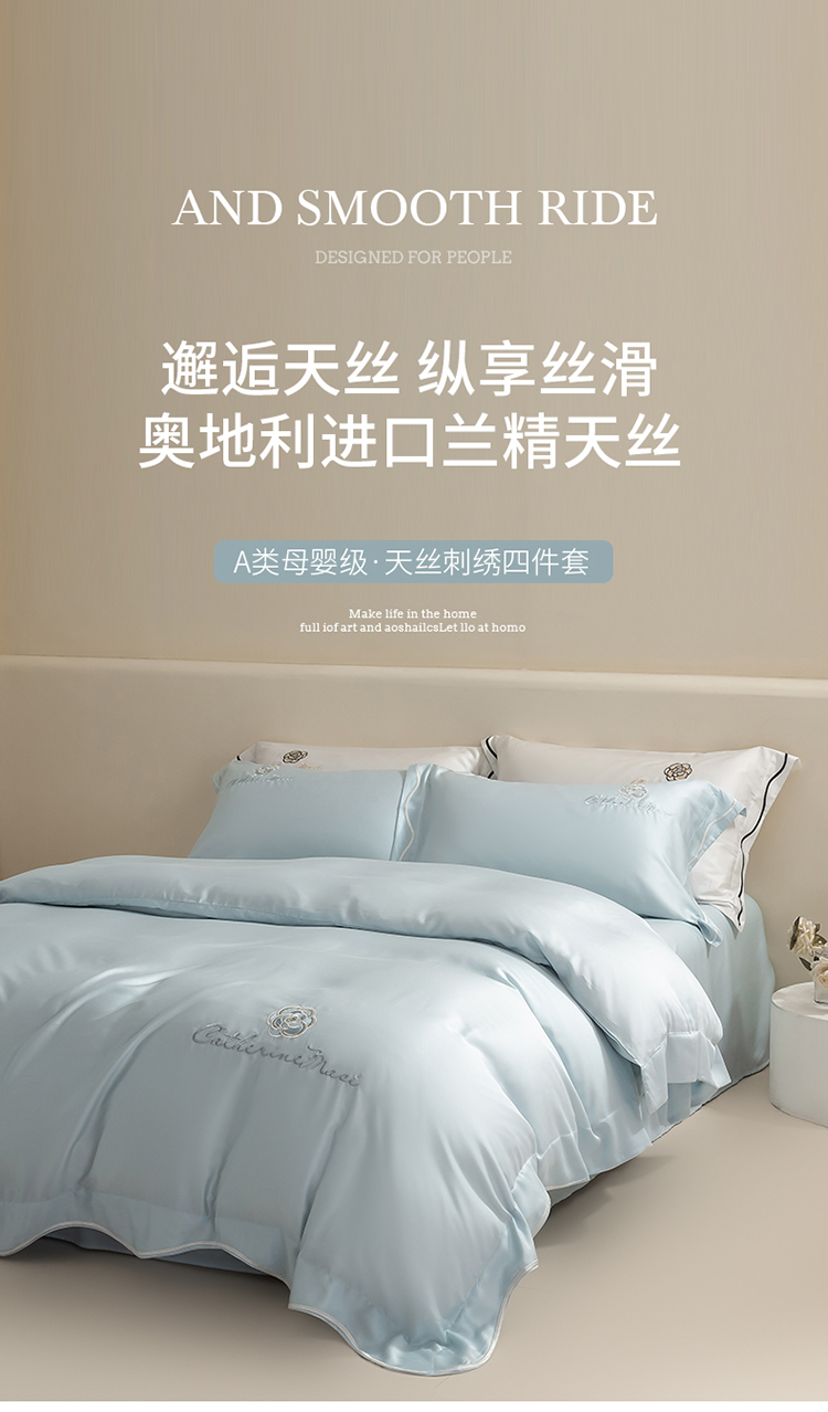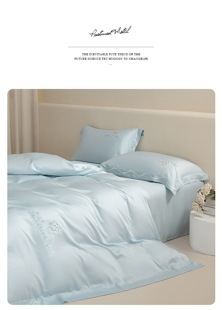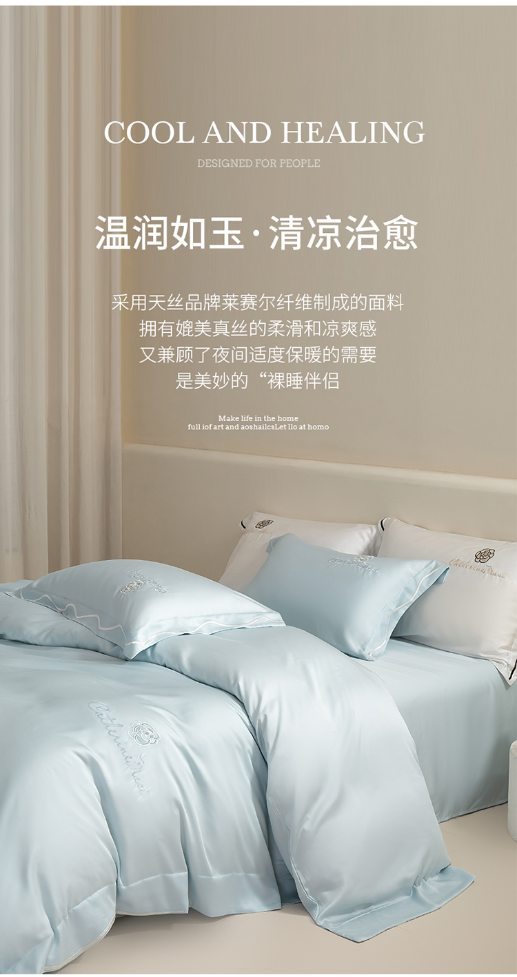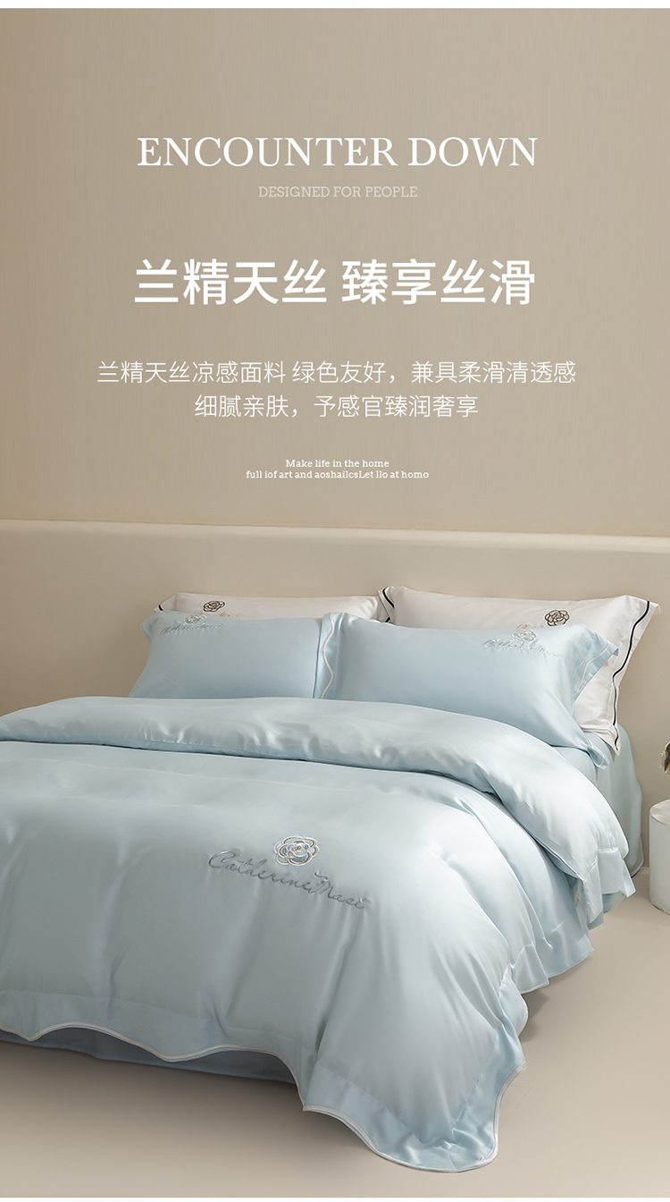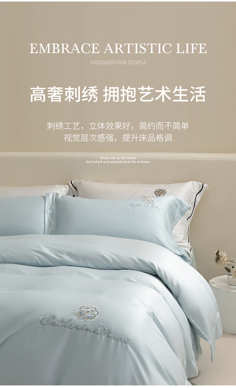 当前位置: 91家纺网 > 商品网购 > 床品套件 > 四件套 > 莱赛尔四件套 > 春夏新品超细旦冷凝刺绣四件套100%莱赛尔高档礼盒装 冰川蓝-赫本-超细旦