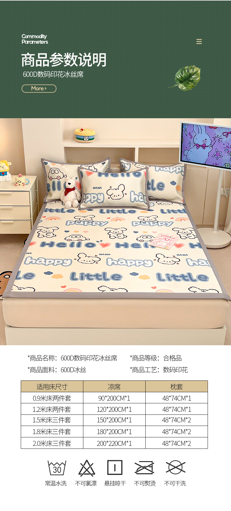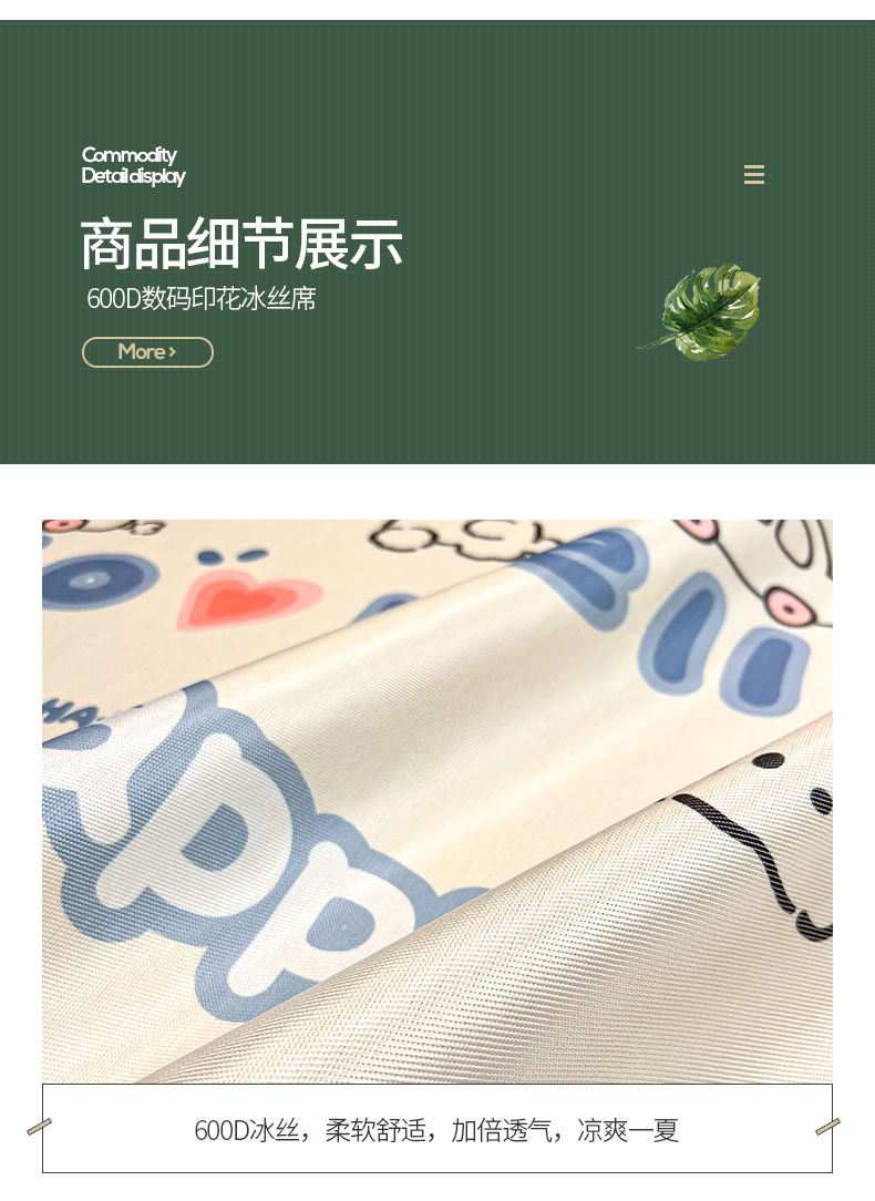 商品名称:懒猫 2025新款600D数码印花冰丝凉席席子 郁金香小兔