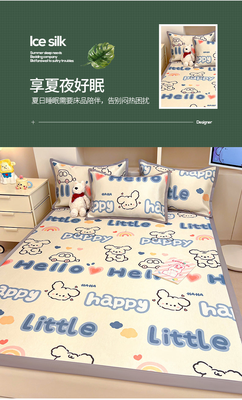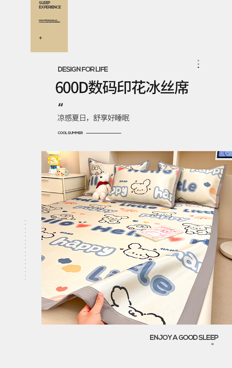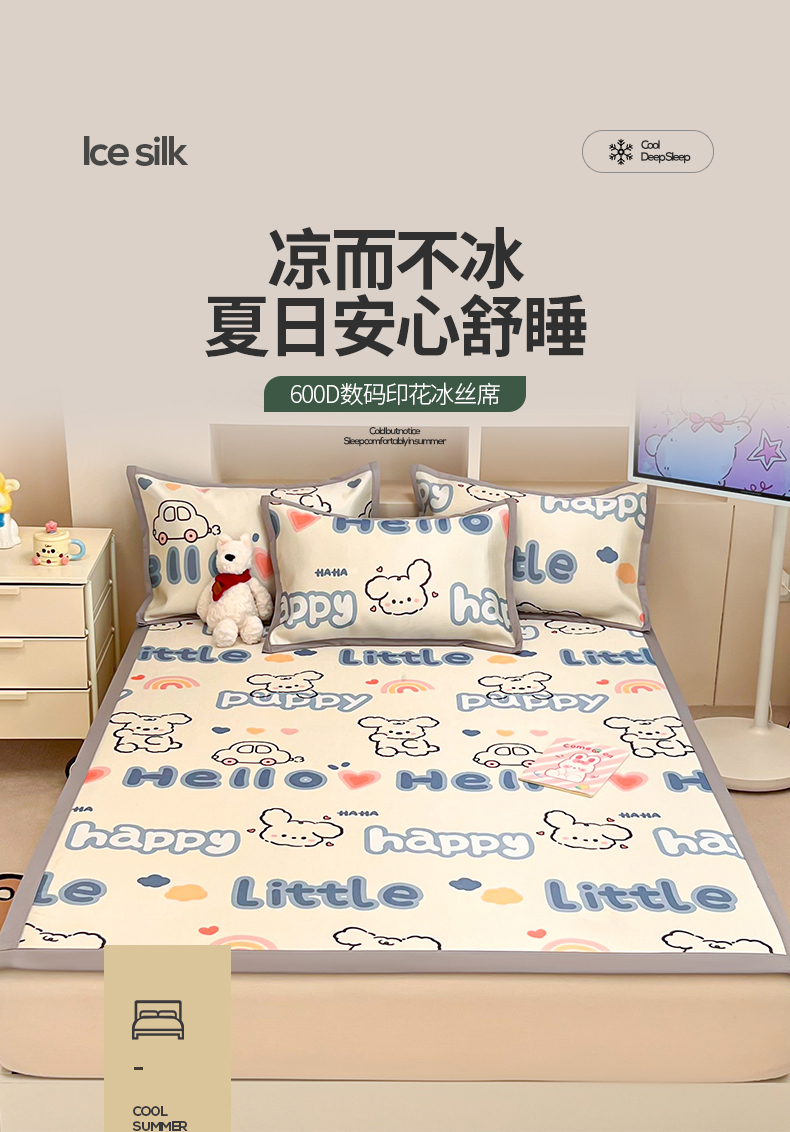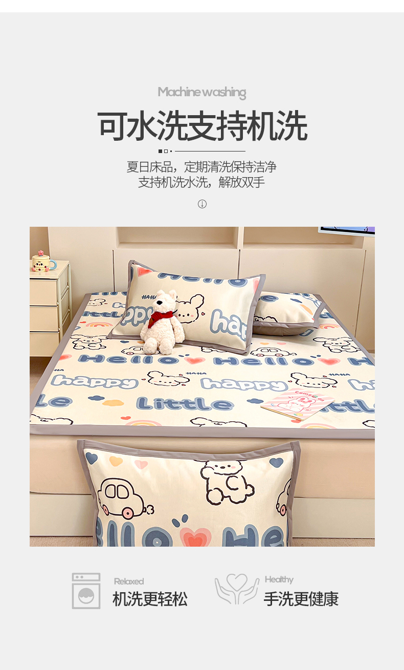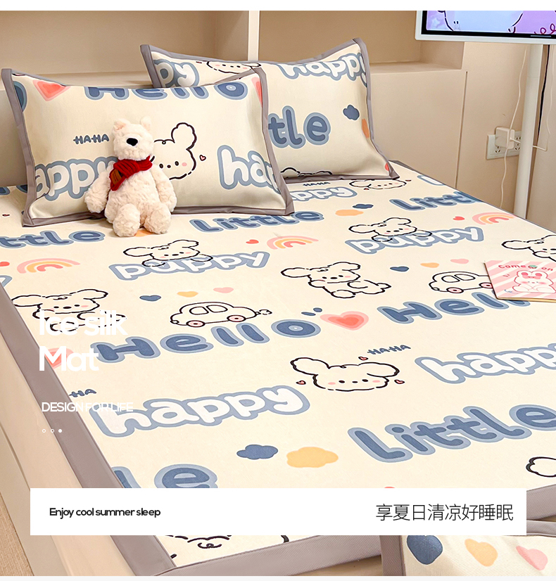 (总)懒猫家纺 2022新款学生宿舍冰丝数码印花凉席,尔雅,粉小兔,花韵,萝卜兔,清晨,手绘爱心,探索星球,甜心,小鲸鱼,小熊仔,元气兔