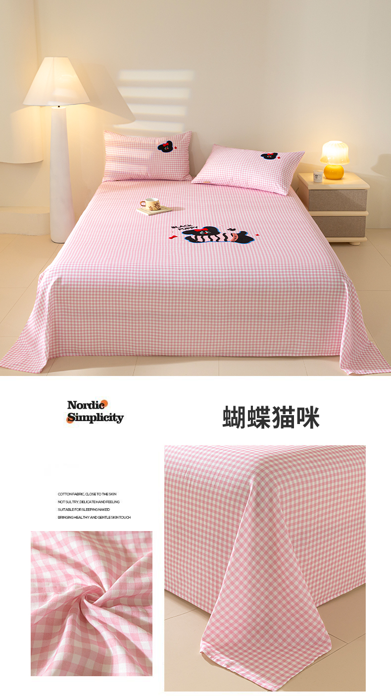 (总)居眠 2025新款全棉纯棉老粗布印花席子凉席床单床笠,Hello Kitty,哈巴狗,黑色格纹,红格纹,灰色线条,蓝纹条,青色花,温妮莎,组合图仅供展示