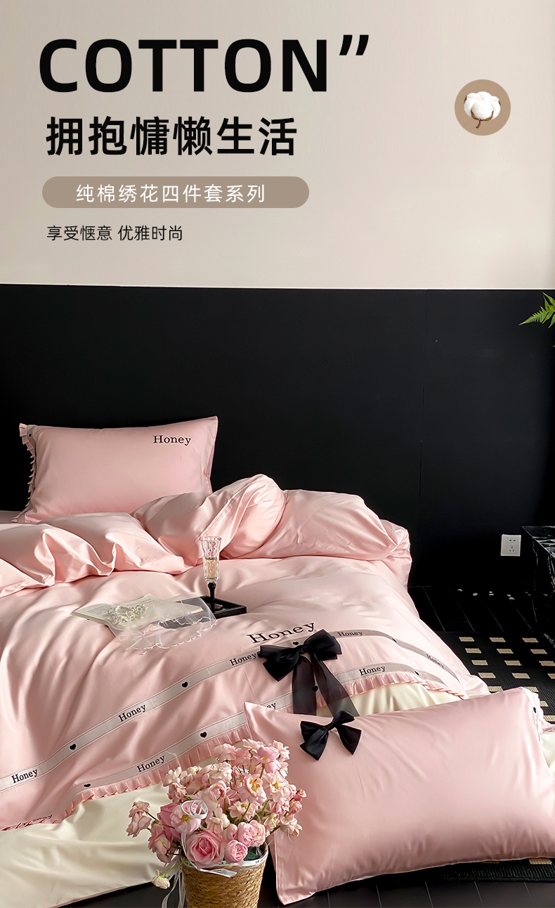 (总)东方合美(原:皇家传奇) 2025新款纯棉绣花四件套轻奢居家款,春恋,玫瑰花园,甜心,honey