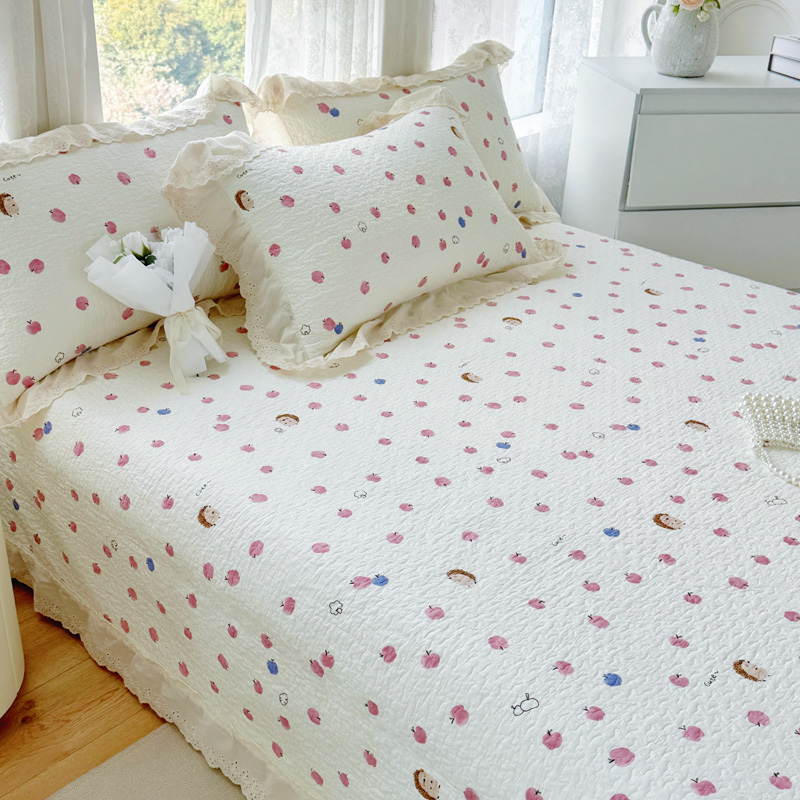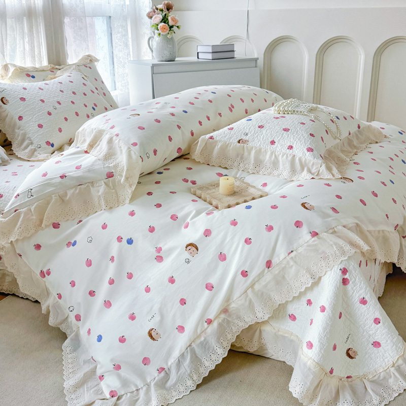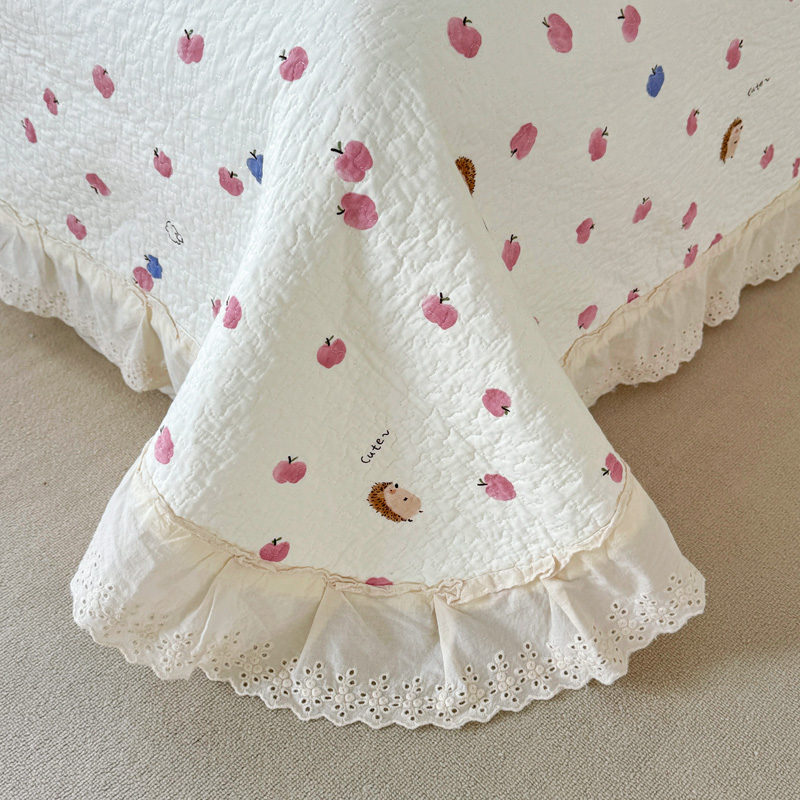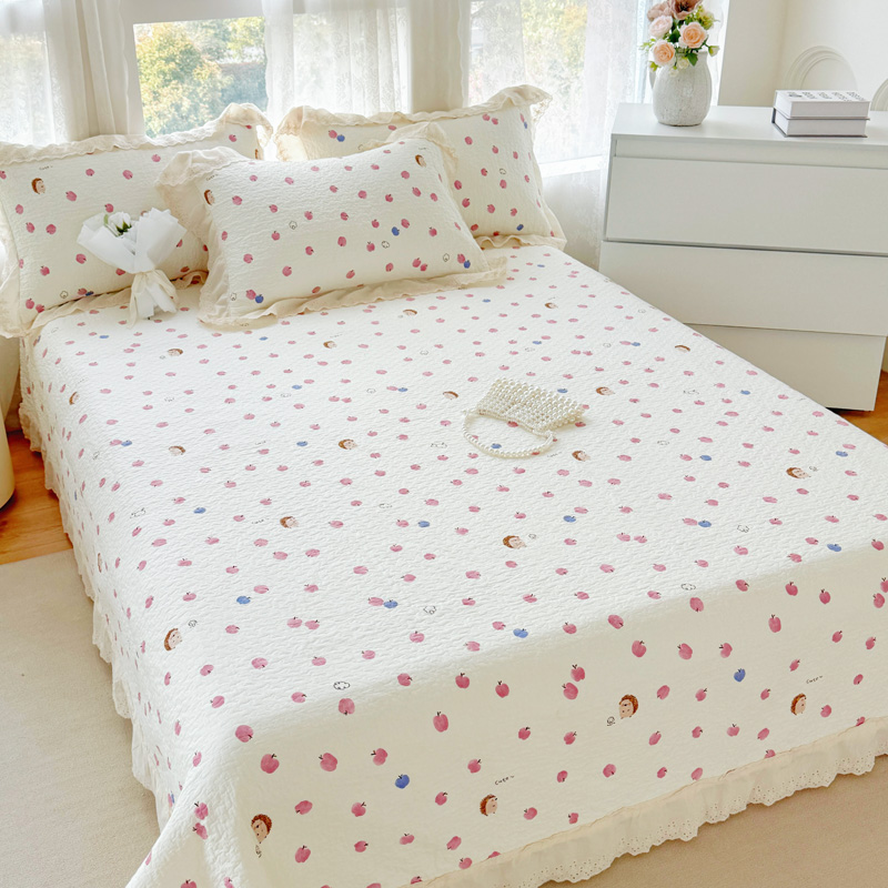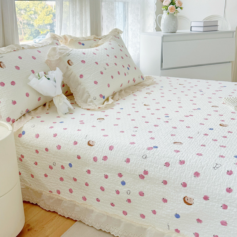 添越 2024小清新韩版蕾丝款花边纯棉夹棉床盖三件套全棉爱心熊-蕾丝款,爱心熊-蕾丝款