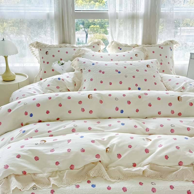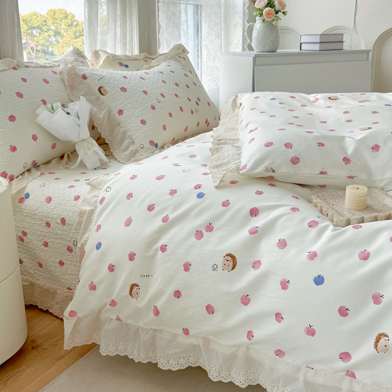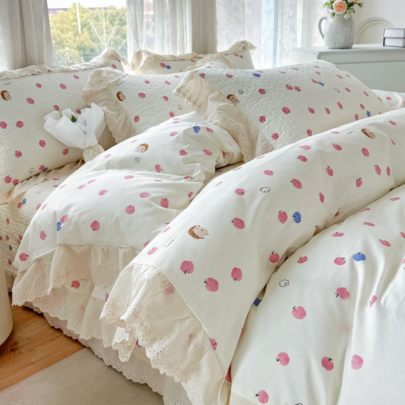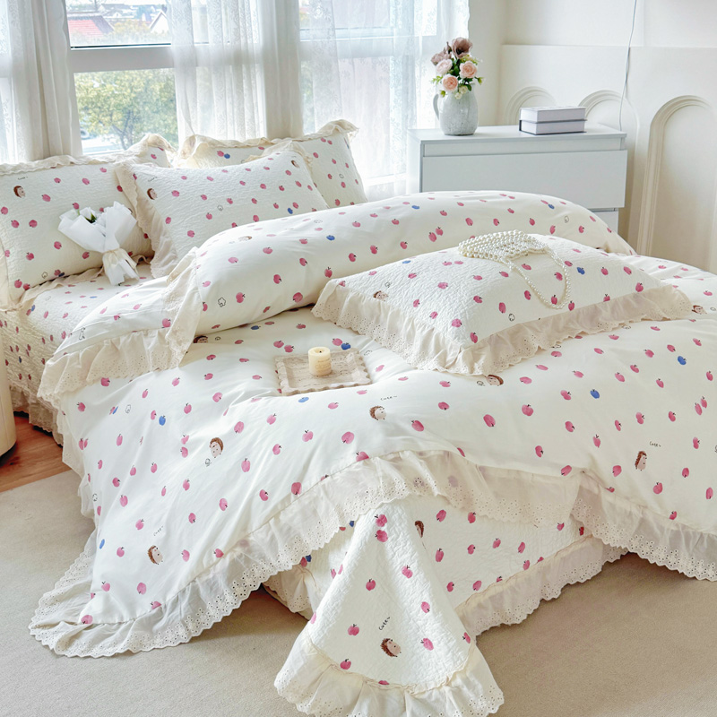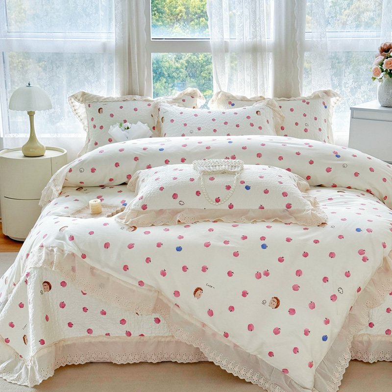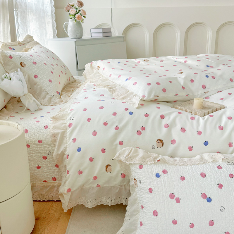 添越 2024小清新韩版蕾丝款花边纯棉夹棉床盖三件套全棉爱心熊-蕾丝款,爱心熊-蕾丝款
