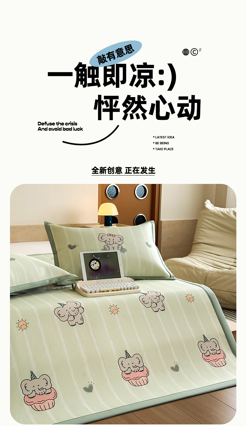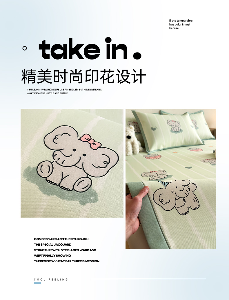 商品名称:全季家居 2025新款日韩竖条风格卡通冰丝席 阳光小象