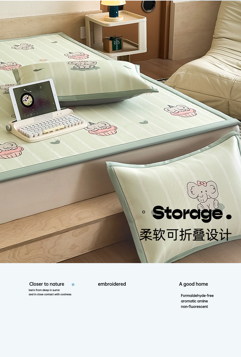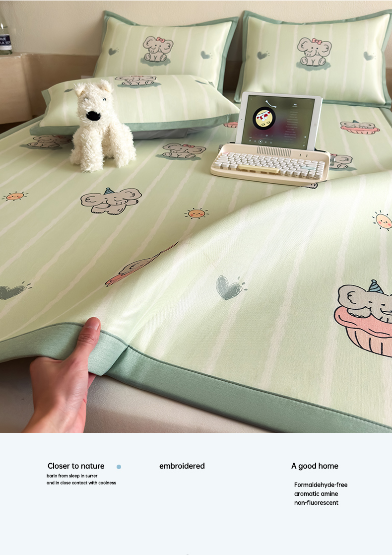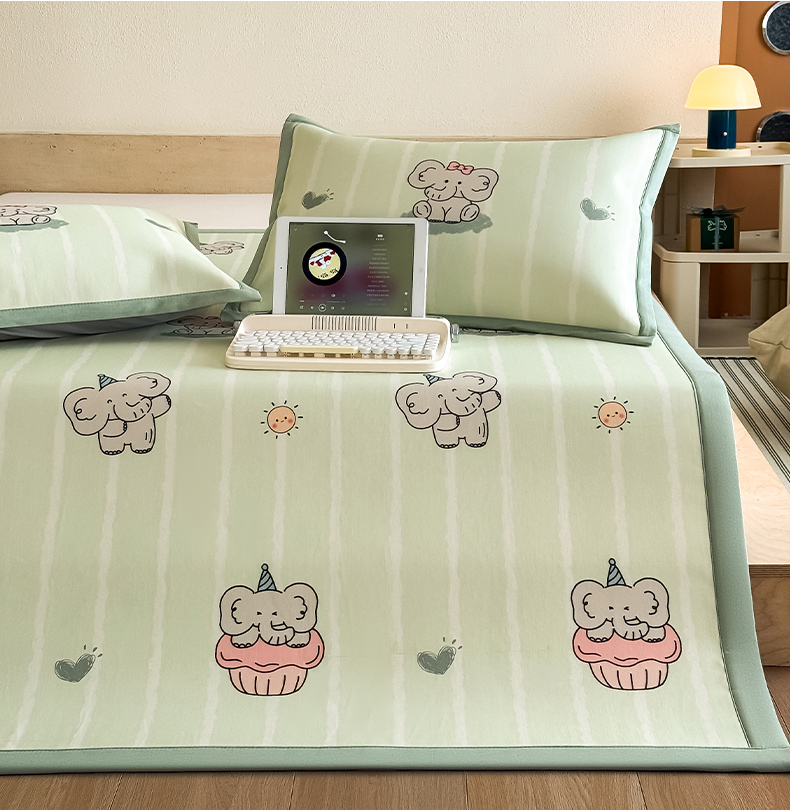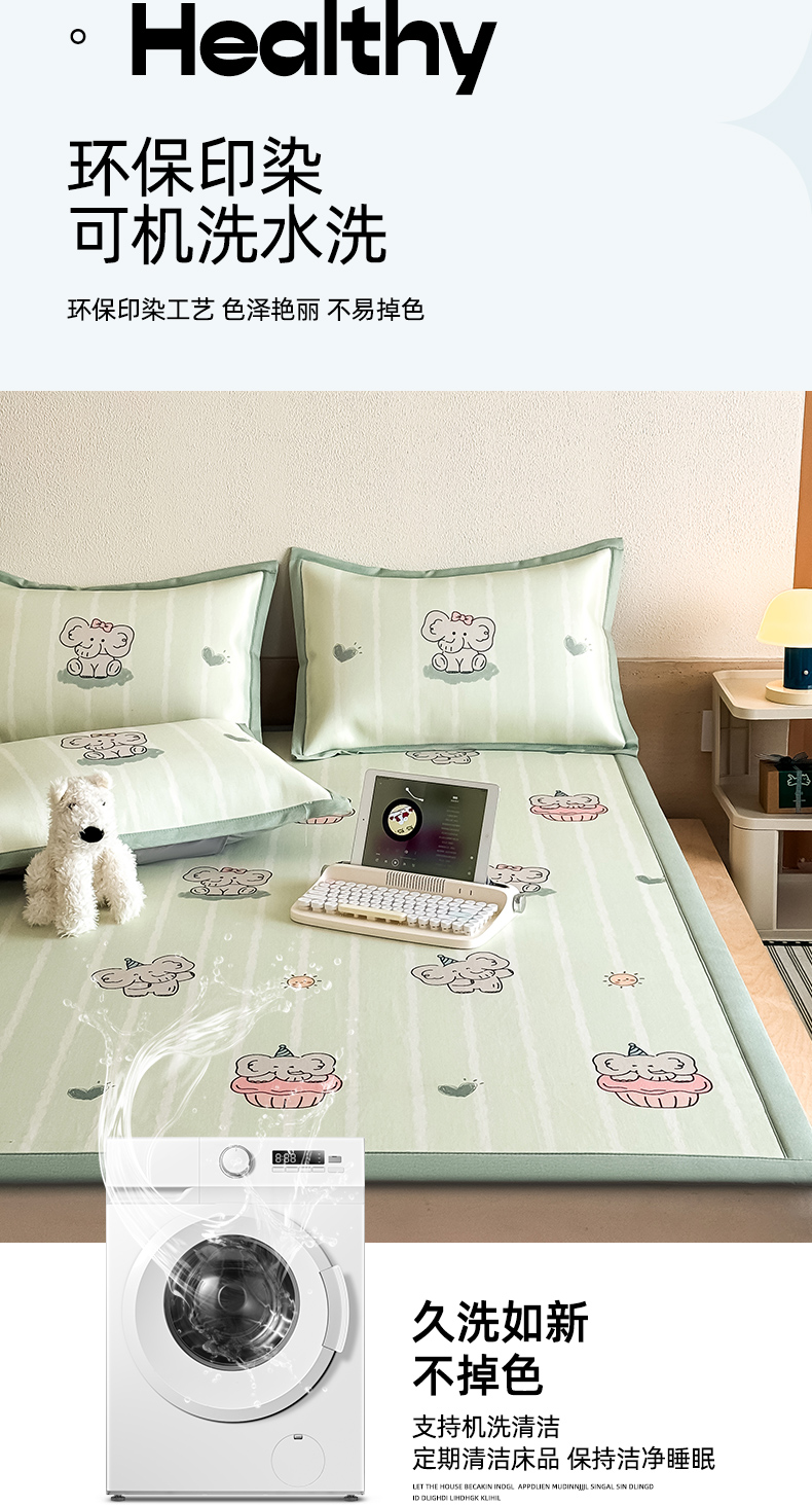 全季家居 2025新款日韩竖条风格卡通冰丝席 阳光小象