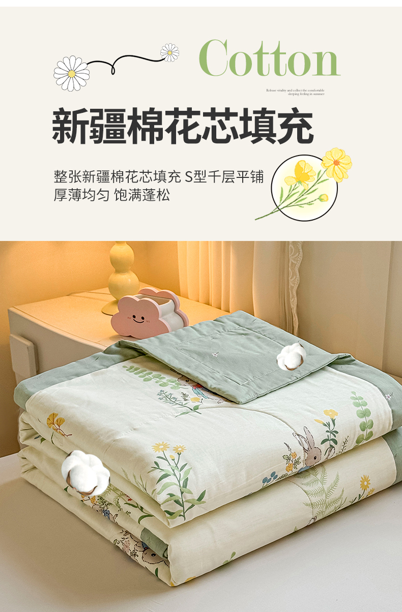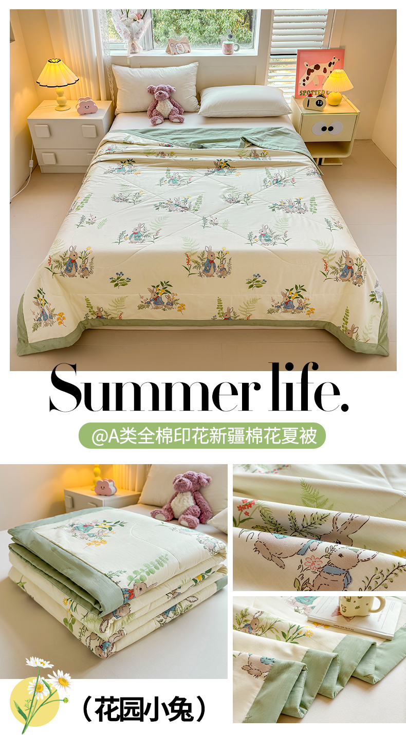 小石头家纺 2025新款里外全棉A类纯棉棉花小碎花夏被包质检=买家秀 花园小兔