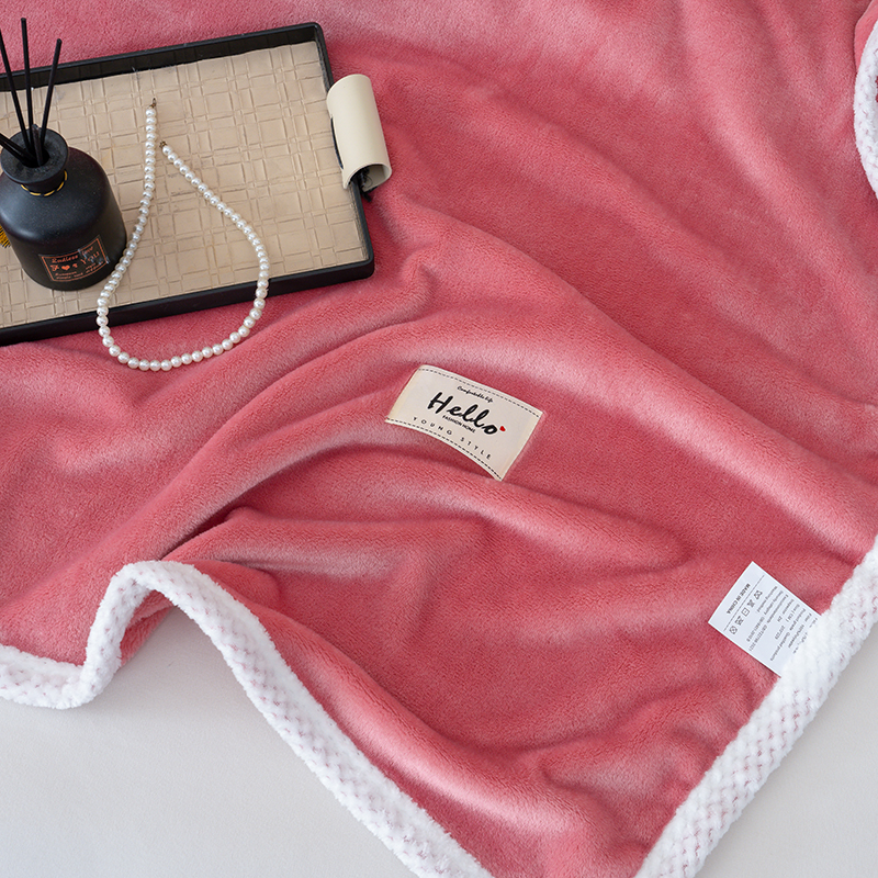 商品名称:好多家纺 2025新款亲肤纯色包边盖毯毯子 豆沙红