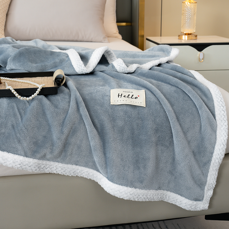 好多家纺 2025新款亲肤纯色包边盖毯毯子 浅绿,浅绿