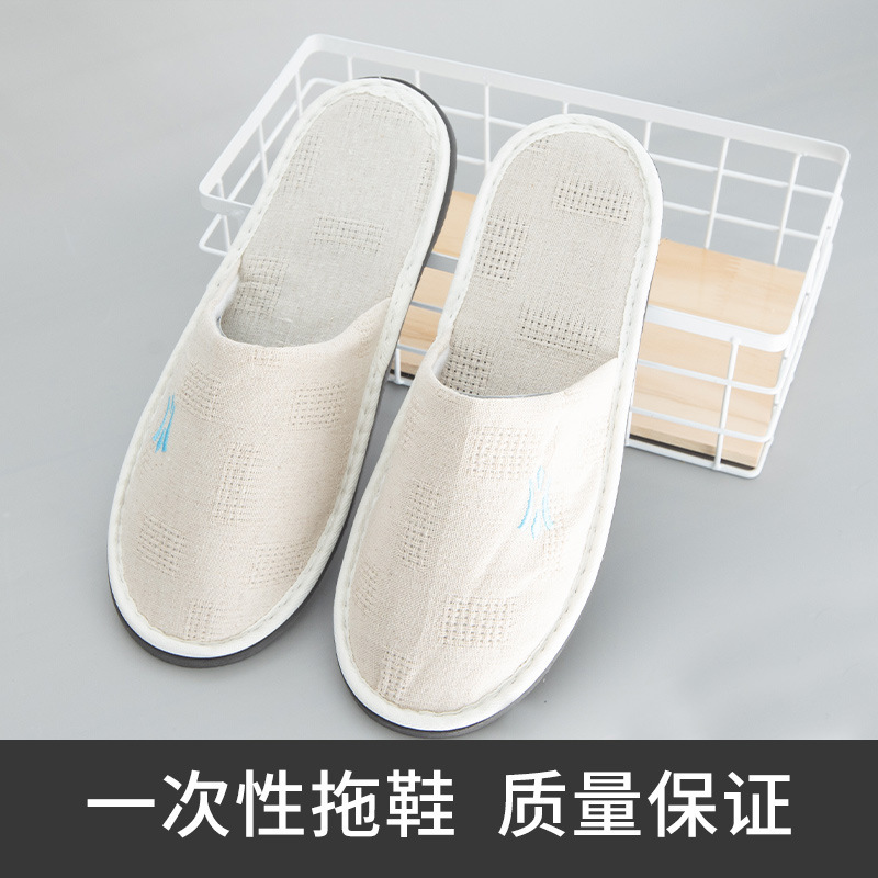 商品名称:锦兴酒店布草 2025新款一次性拖鞋高档酒店民宿宾馆专用加厚防滑拖鞋拉毛绒麻布拖鞋批发 浅黄 6mmEVA防滑底珍珠棉拖鞋