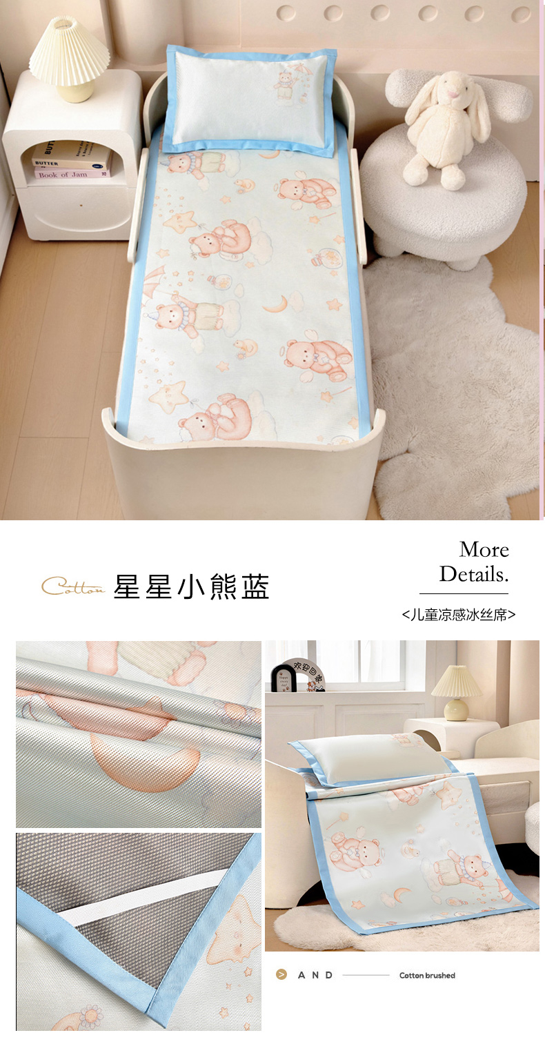 商品名称:御棉坊 2025新款A类600D数码印花儿童凉席 星星小熊蓝