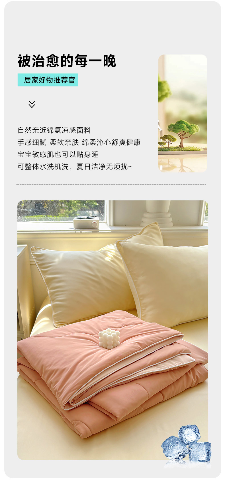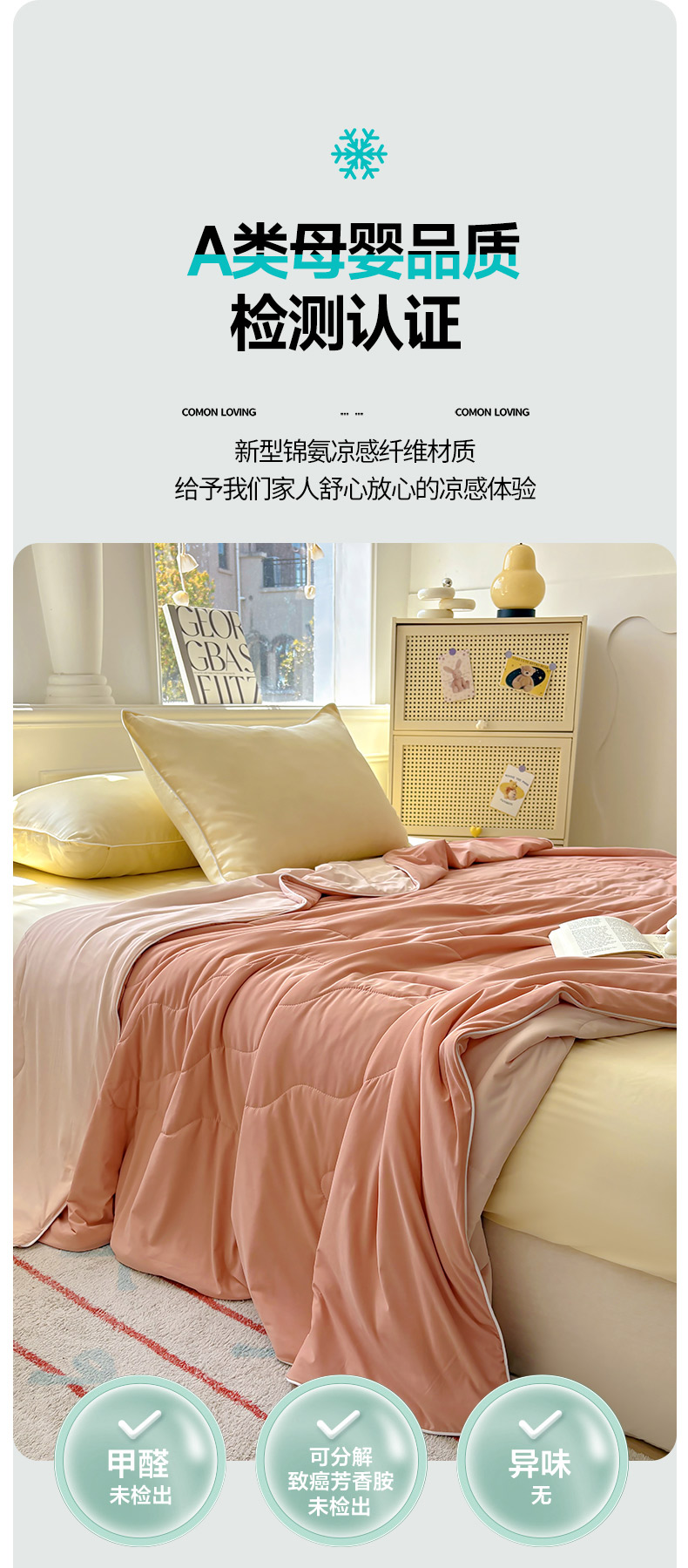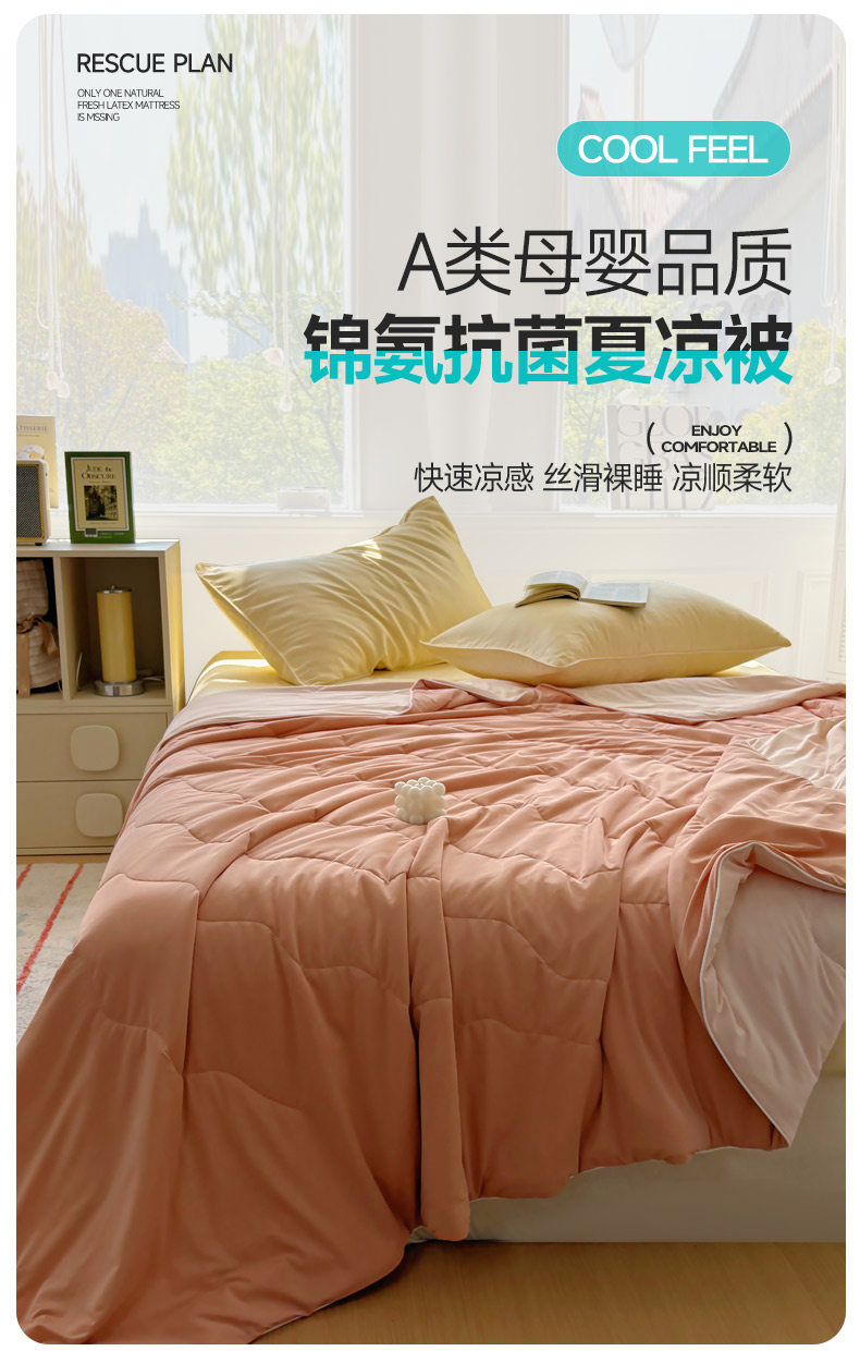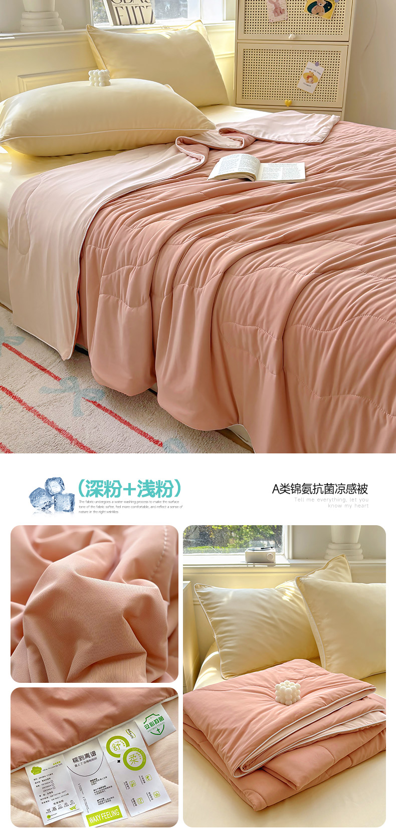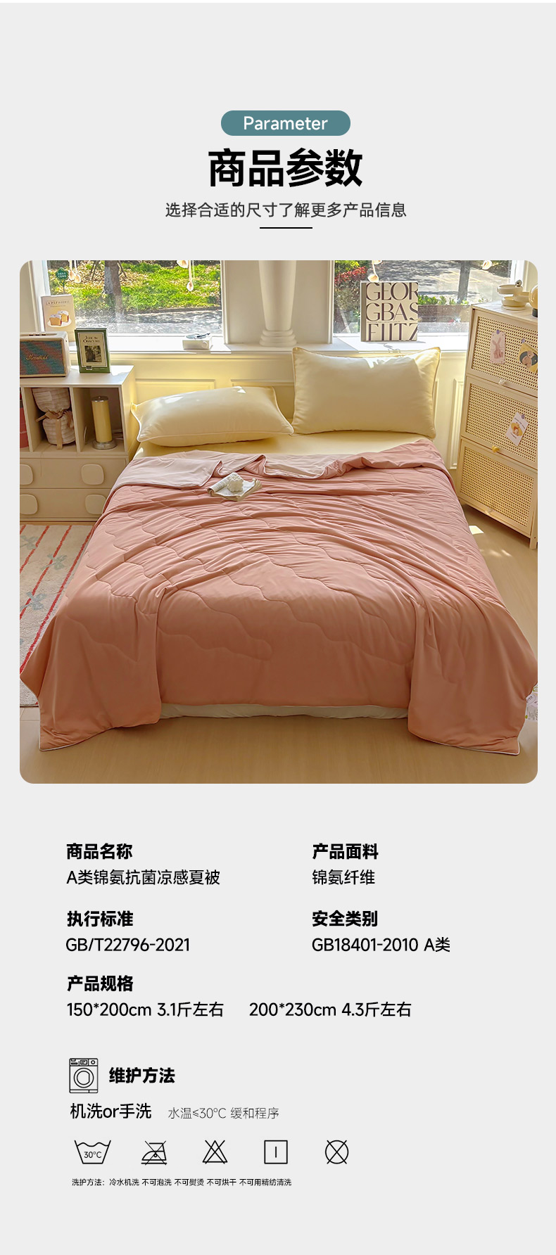 商品名称:百寐 2025新款A类160克88%锦纶+12%氨纶锦氨夏被纯色夏凉被空调被 深粉+浅粉