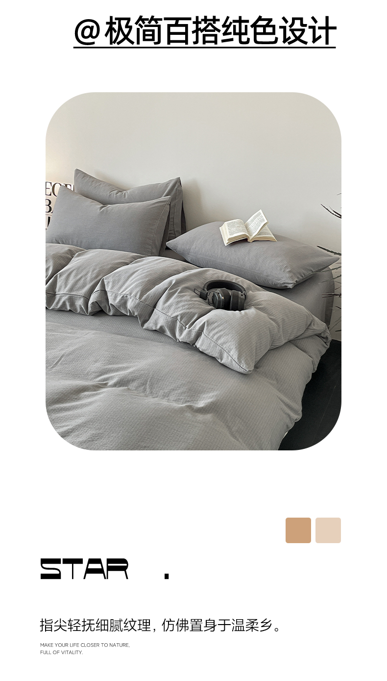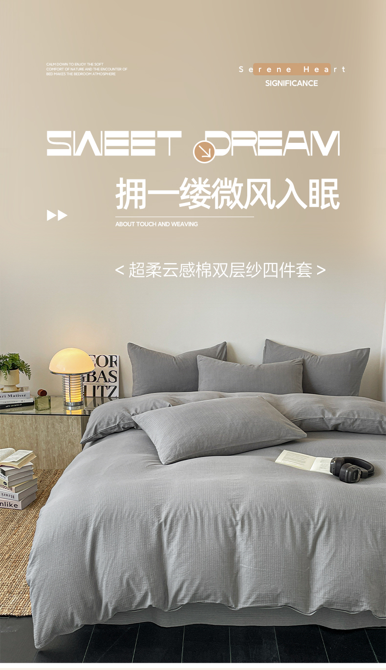当前位置: 91家纺网 > 商品网购 > 床品套件 > 四件套 > 化纤活性四件套 > 优承佳 2025新款超柔云感m纯色双层纱四件套 双层纱-浅灰