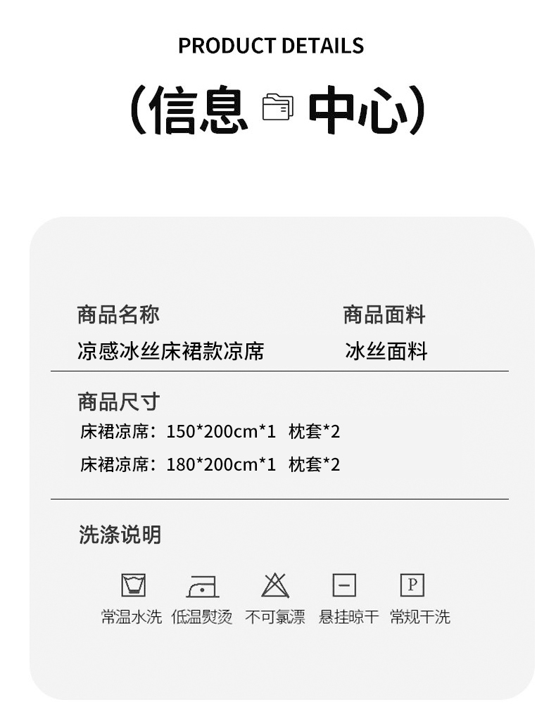 商品名称:无瑕家居 2025新款春夏款冰丝凉席床裙款三件套空气层凉席席子凉席床裙 高级灰
