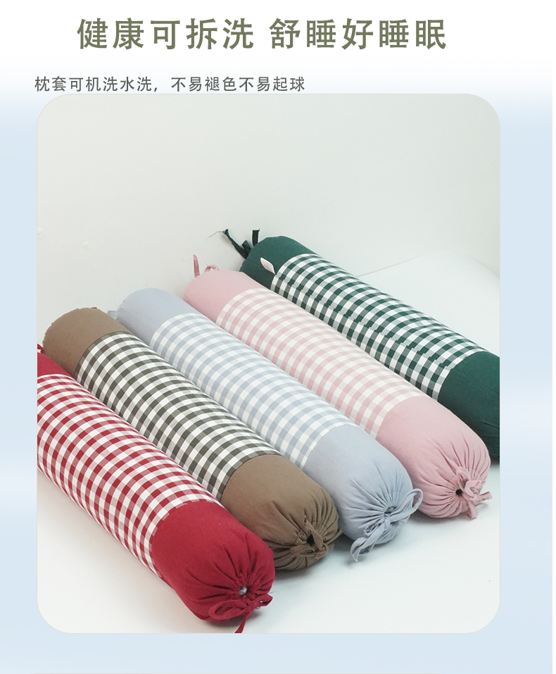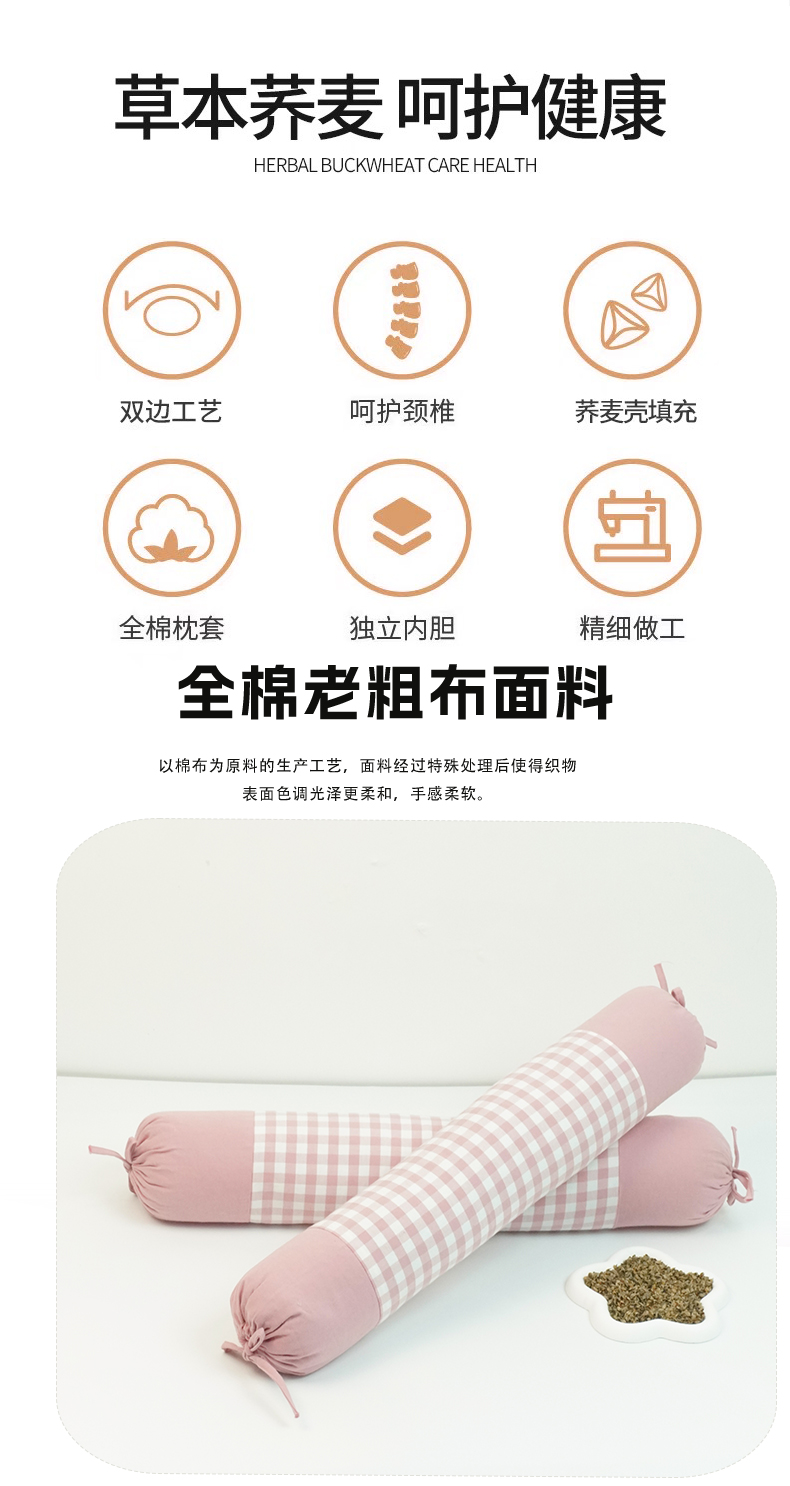 商品名称:(总)芯洲 2025新款全棉圆柱格子老粗布荞麦枕简约成人牵引枕枕头枕芯