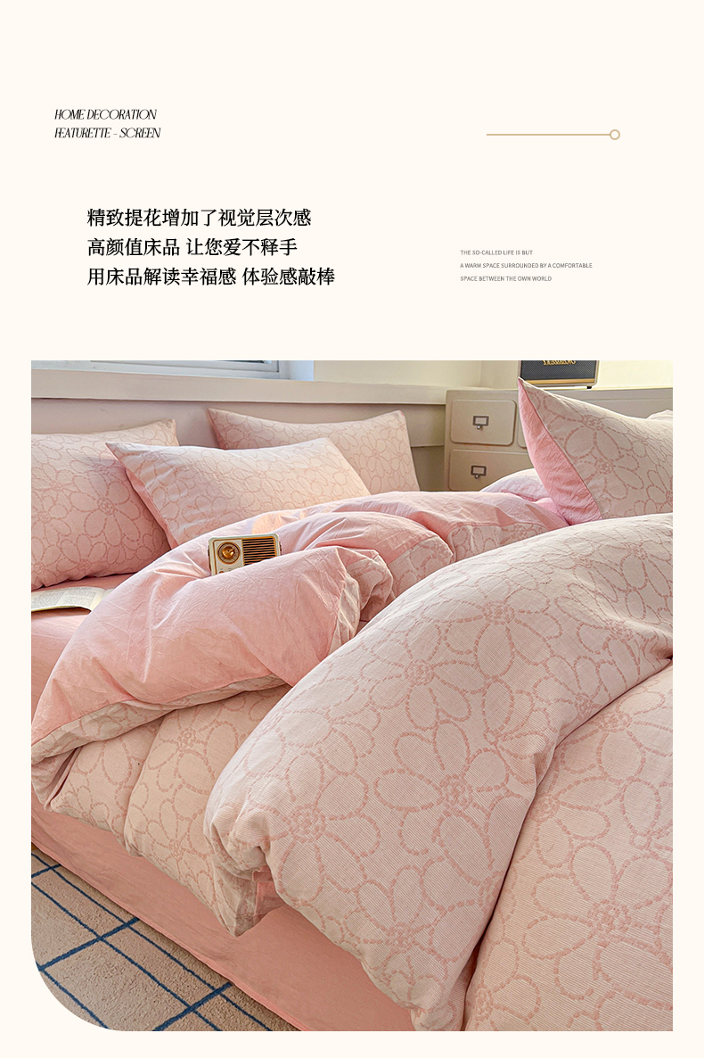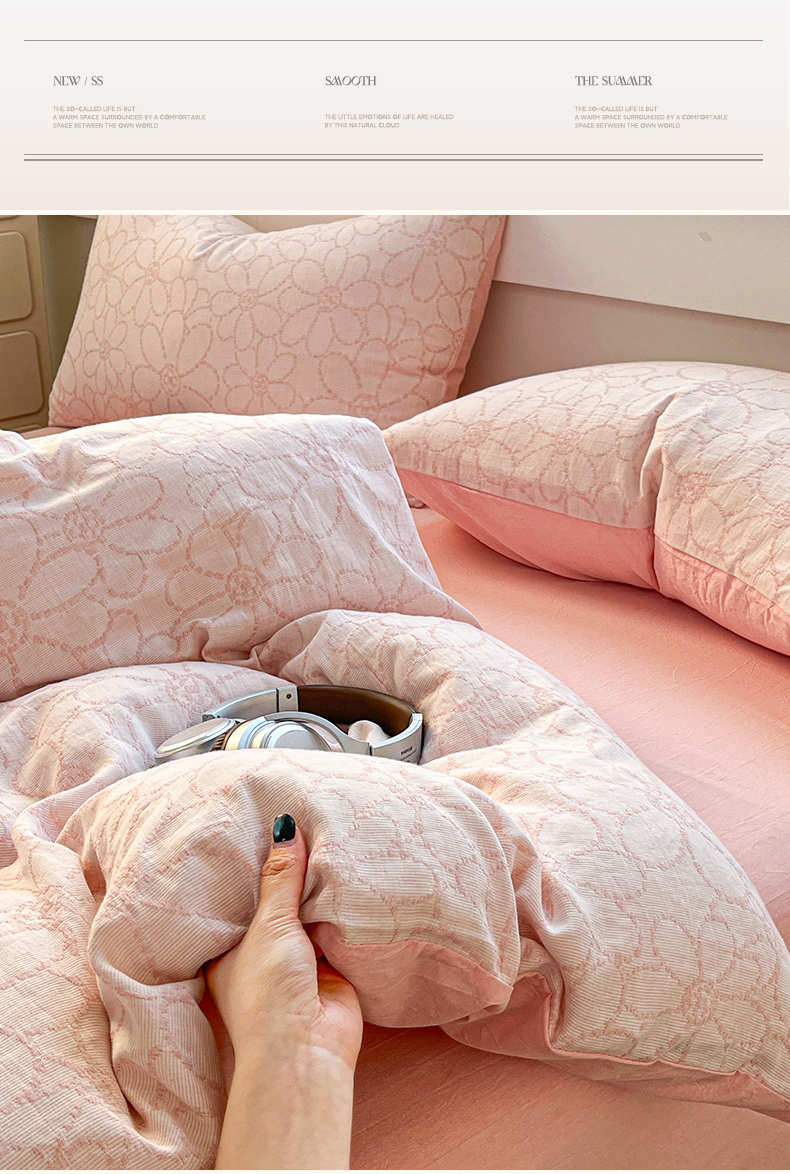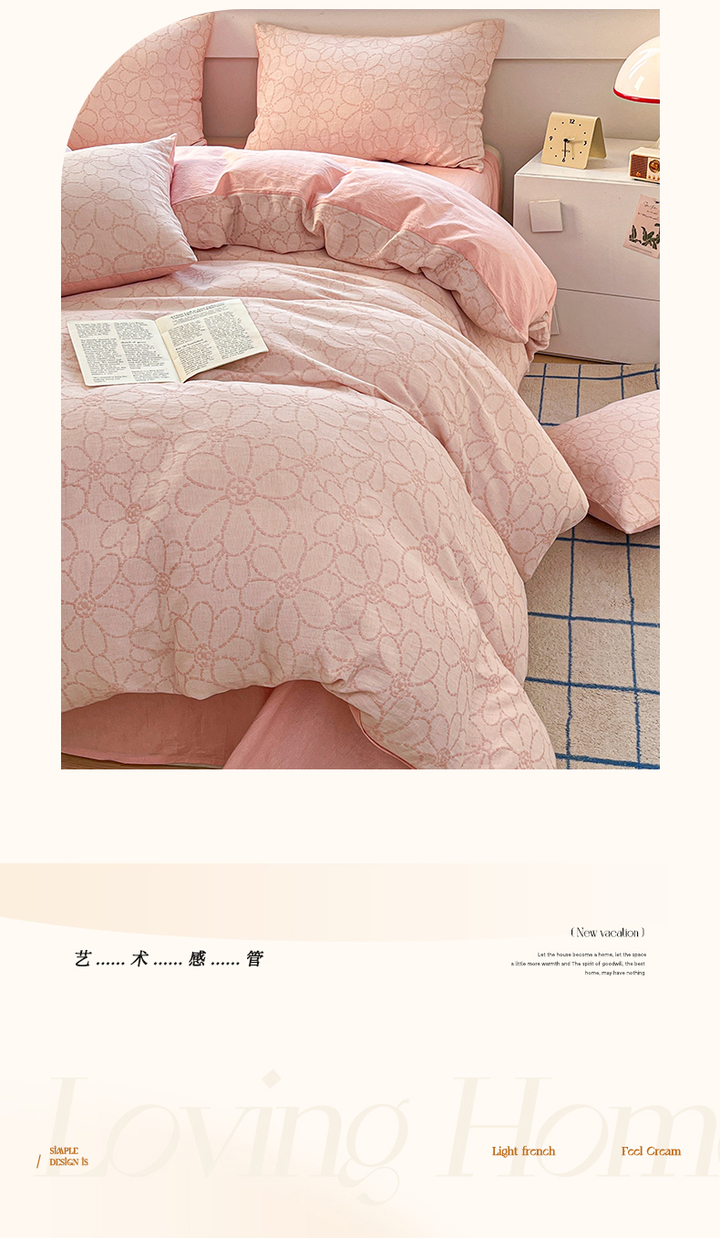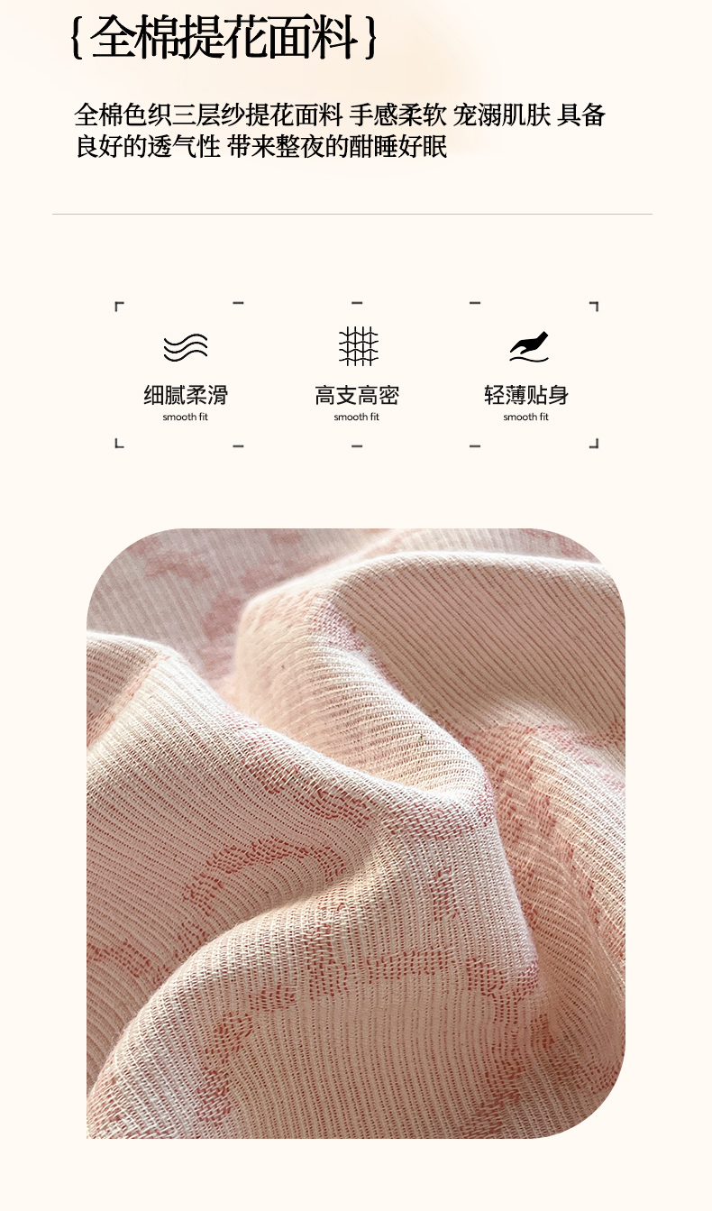 当前位置: 91家纺网 > 商品网购 > 床品套件 > 四件套 > 色织四件套 > 菡宝 2025新款a类母婴级纯棉全棉纯棉色织三层纱提花系列四件套 洛可可-粉