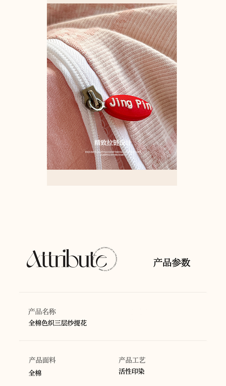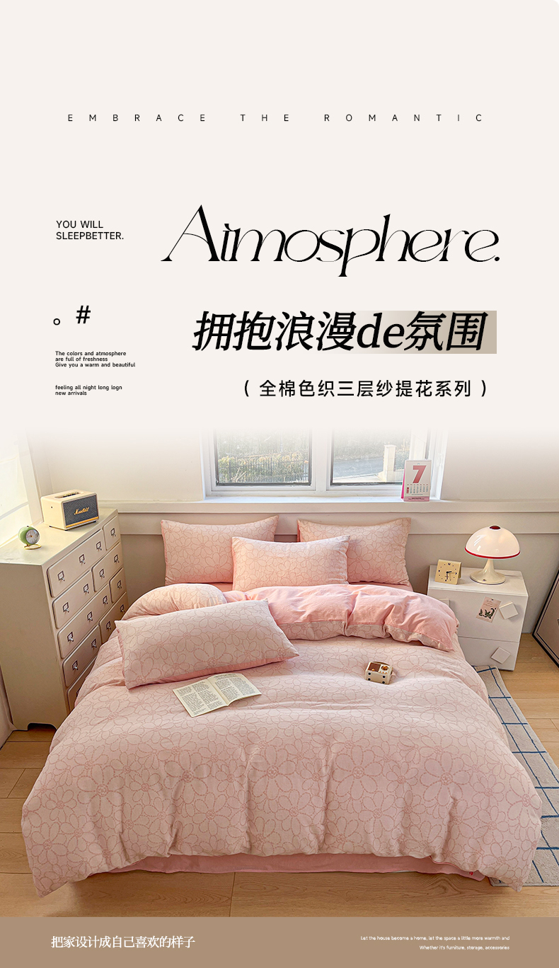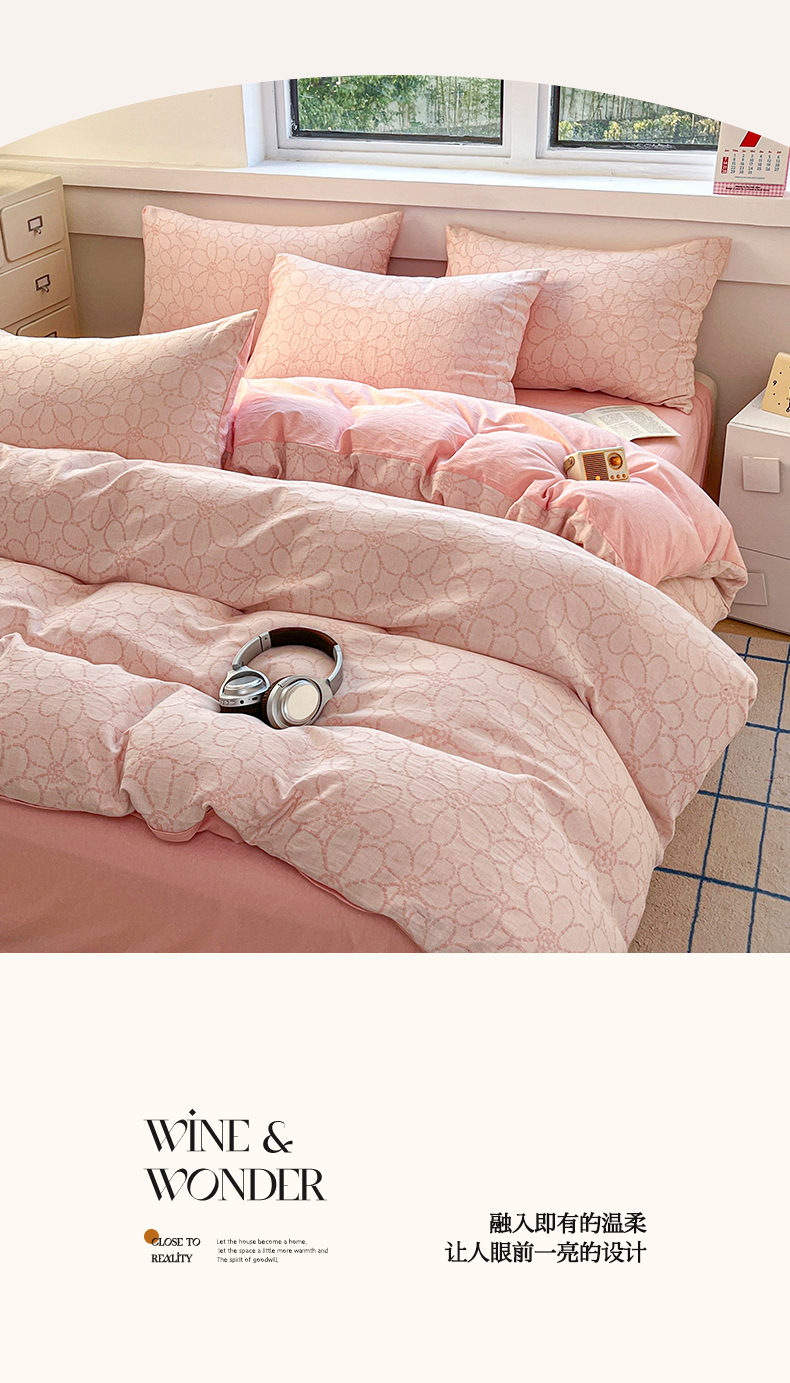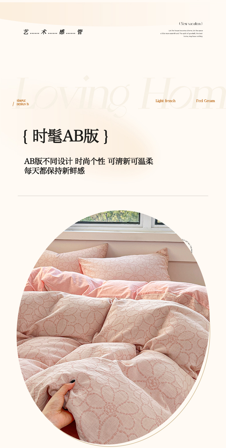 当前位置: 91家纺网 > 商品网购 > 床品套件 > 四件套 > 色织四件套 > 菡宝 2025新款a类母婴级纯棉全棉纯棉色织三层纱提花系列四件套 洛可可-粉