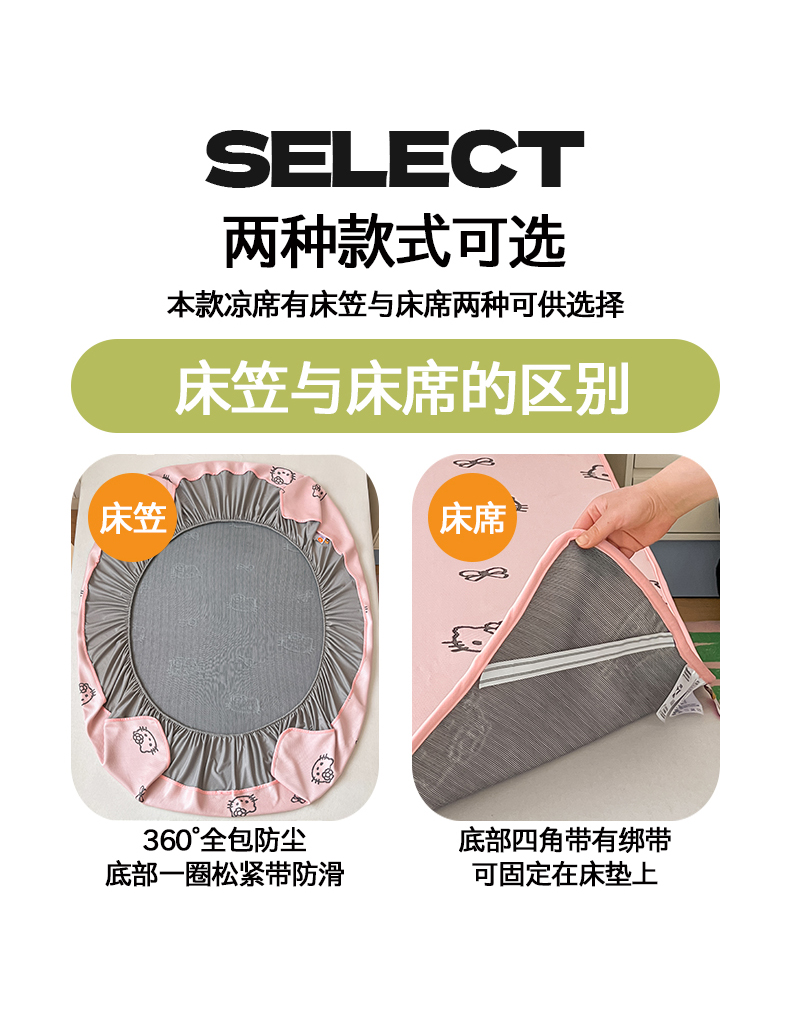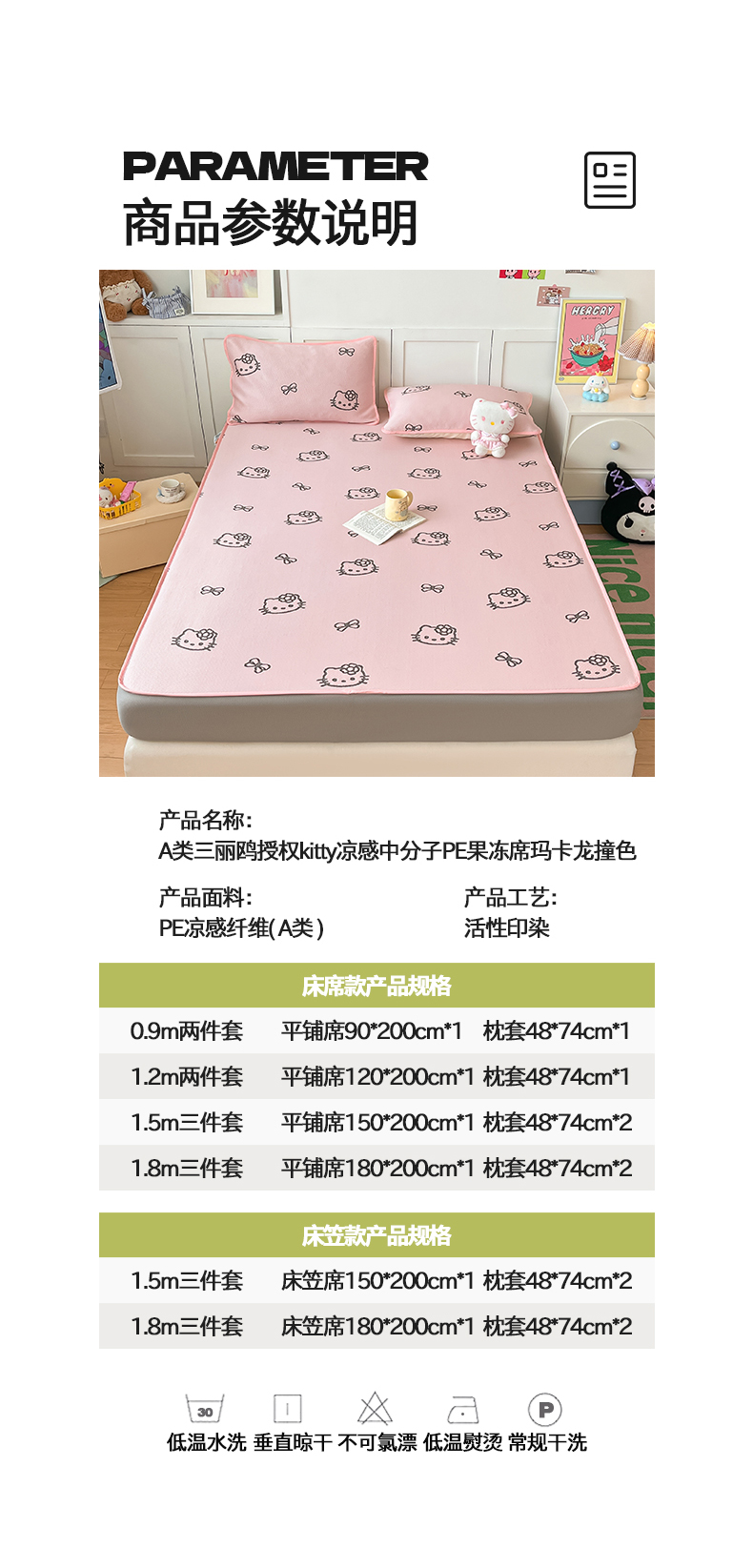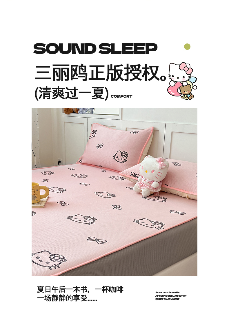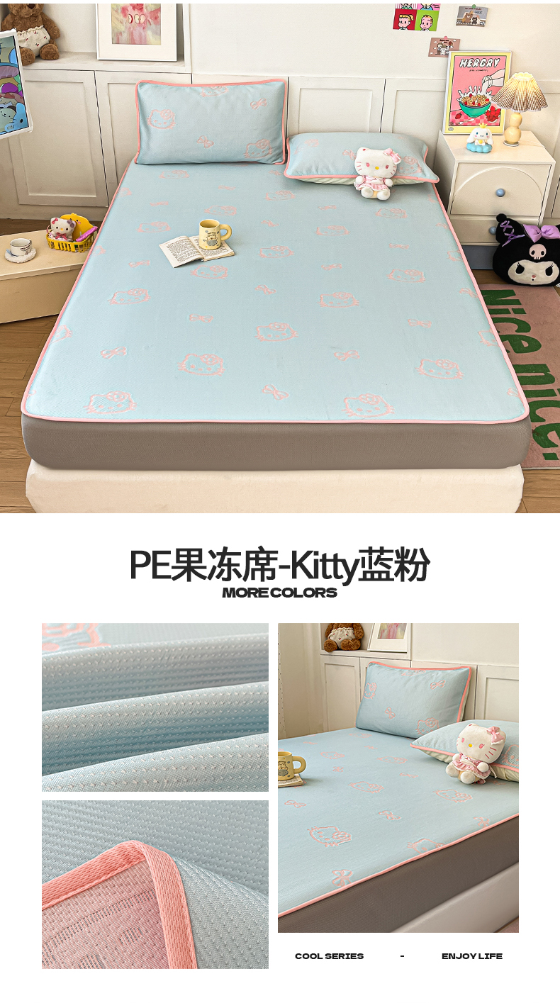 商品名称:(总)金爱家 2025新款A类三丽鸥授权kitty凉感中分子PE果冻席玛卡龙撞色空调软席凉席