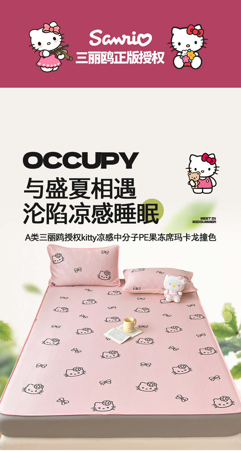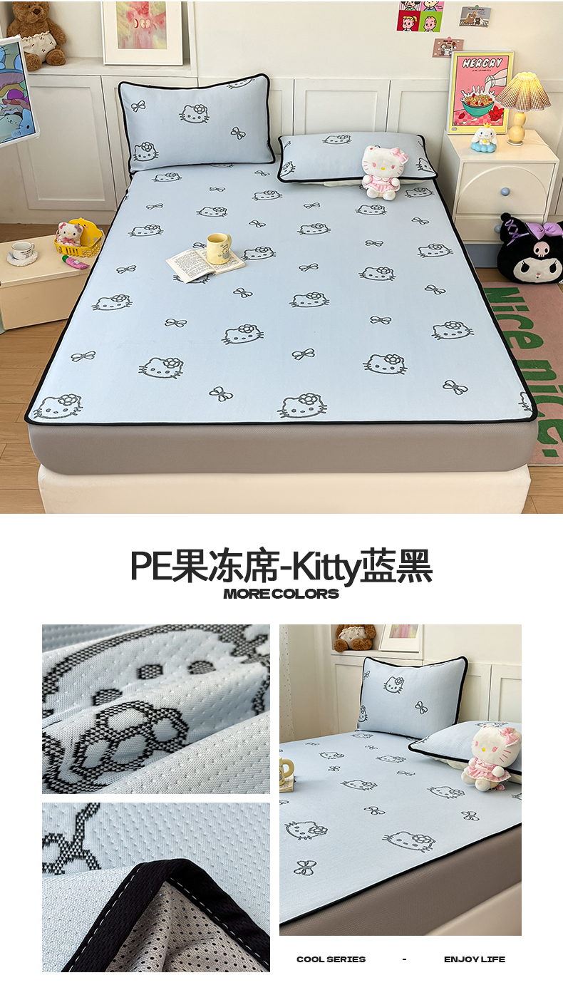 (总)金爱家 2025新款A类三丽鸥授权kitty凉感中分子PE果冻席玛卡龙撞色空调软席凉席