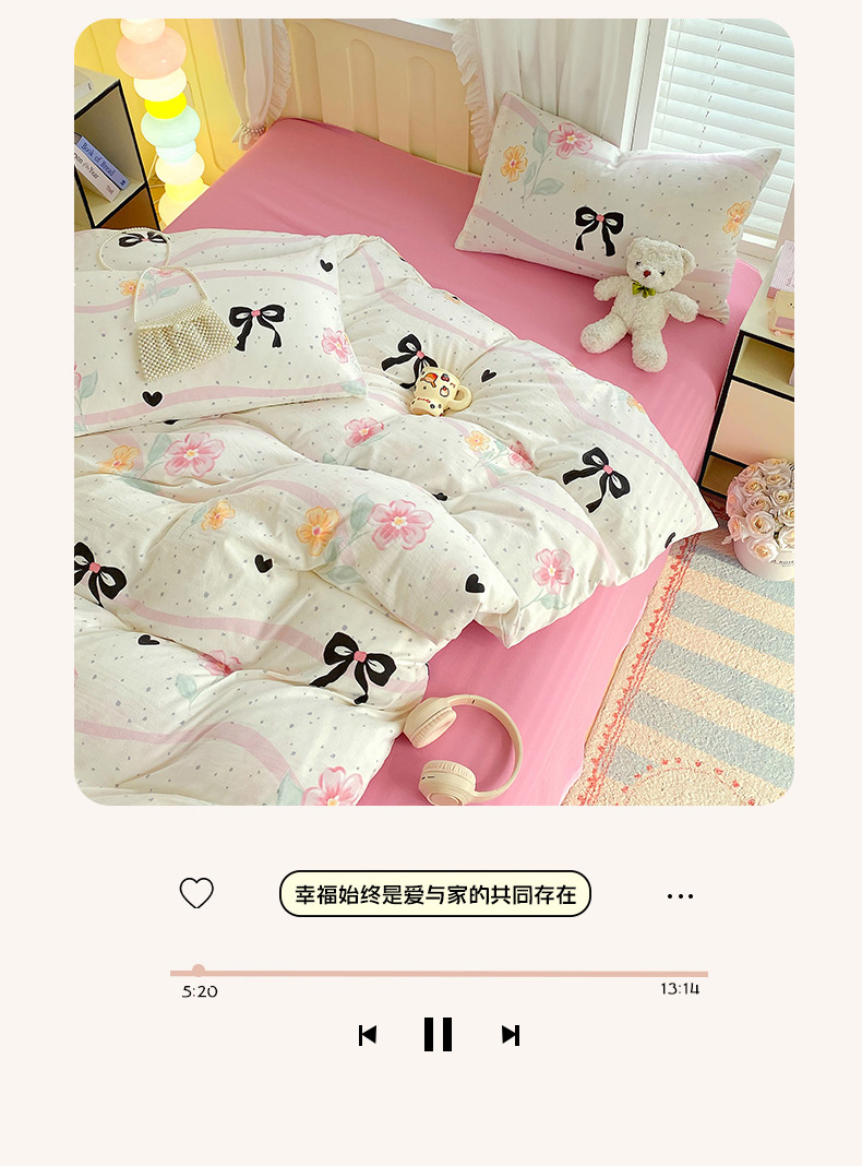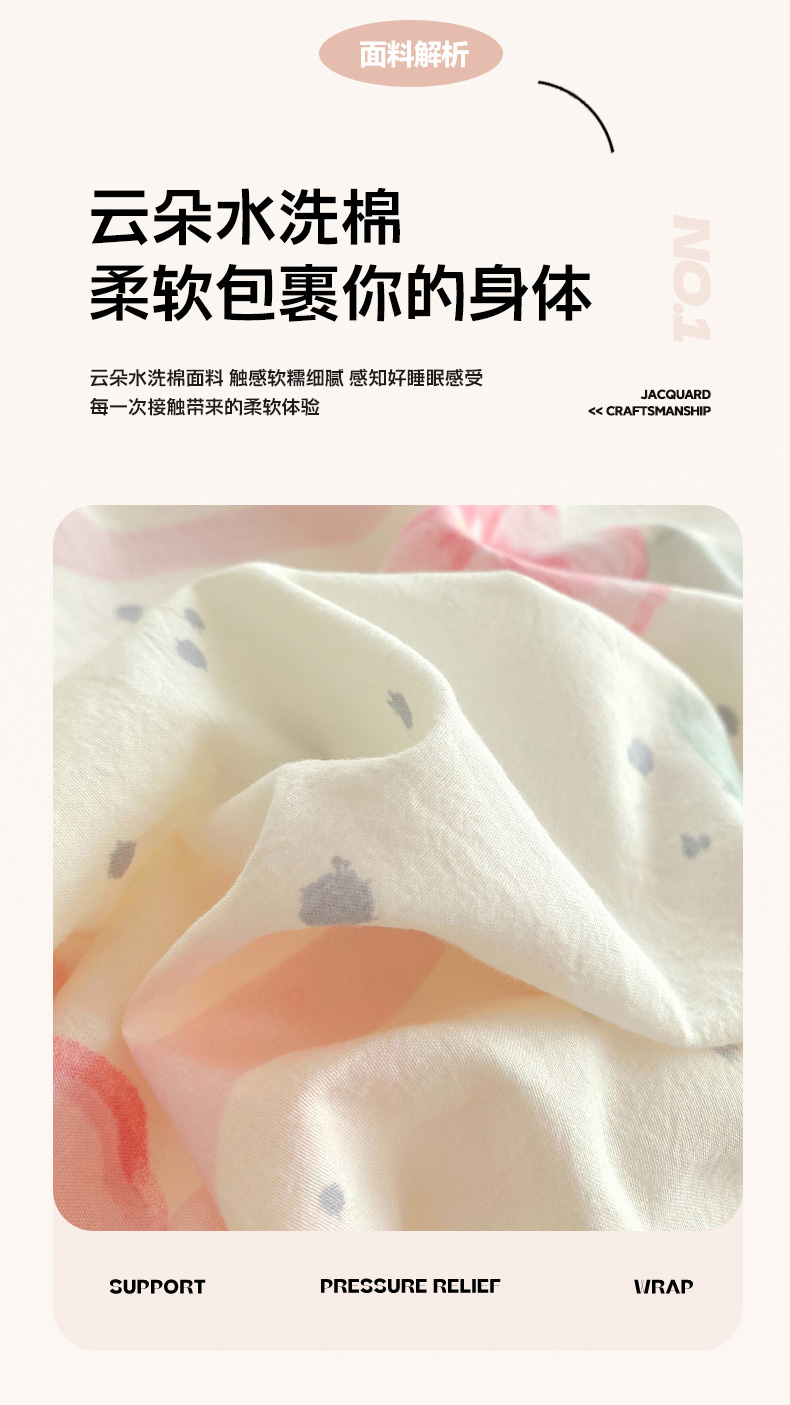 当前位置: 91家纺网 > 商品网购 > 床品套件 > 四件套 > 水洗棉四件套 > 雨彤家纺 2025年新款软糯糯云朵水洗棉印花四件套 氧气周末