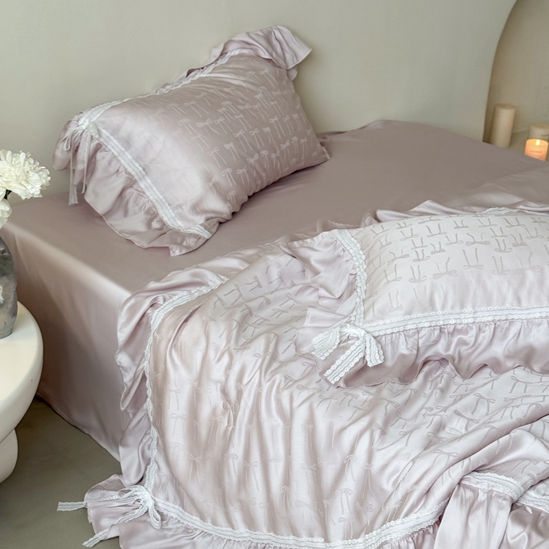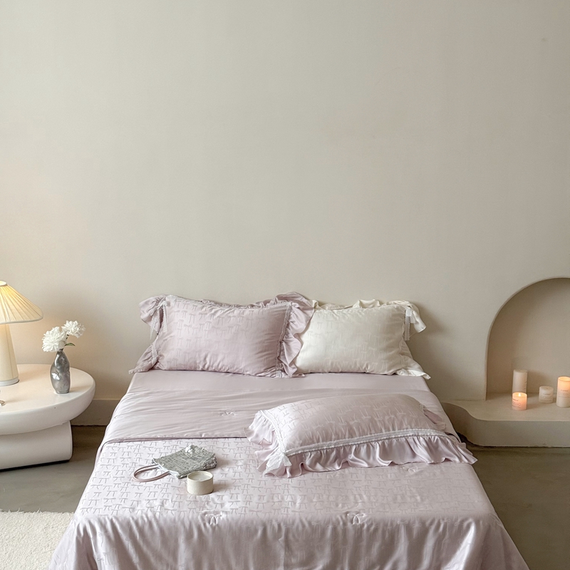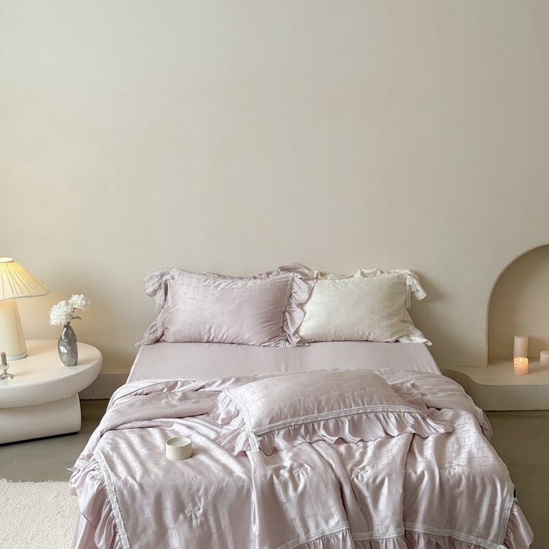 商品名称:MIU缪家居 2025新款60兰精天丝夏被四件套 薇薇安 单夏被控价288/四件套控价388 紫粉