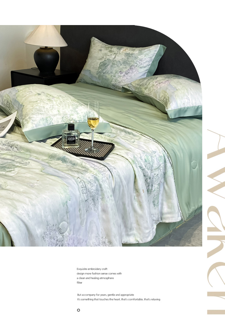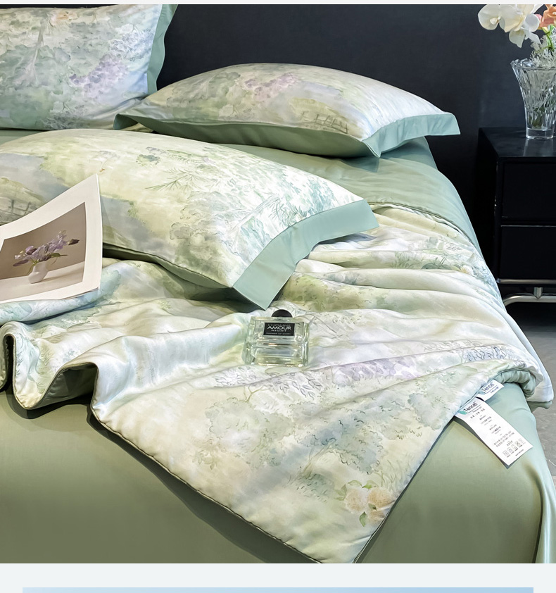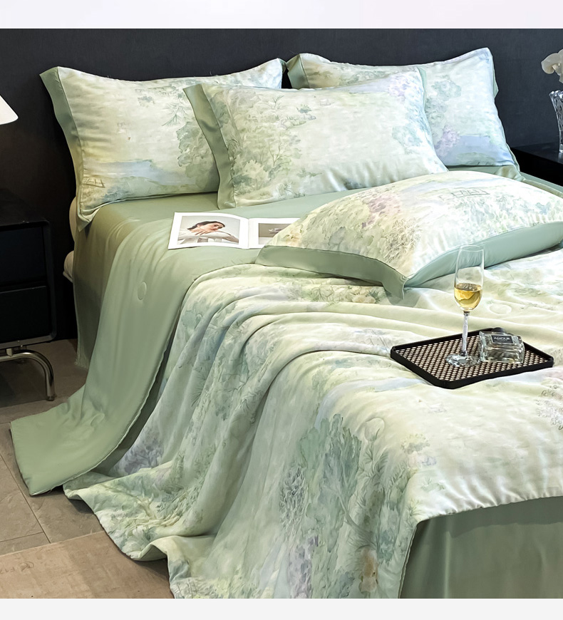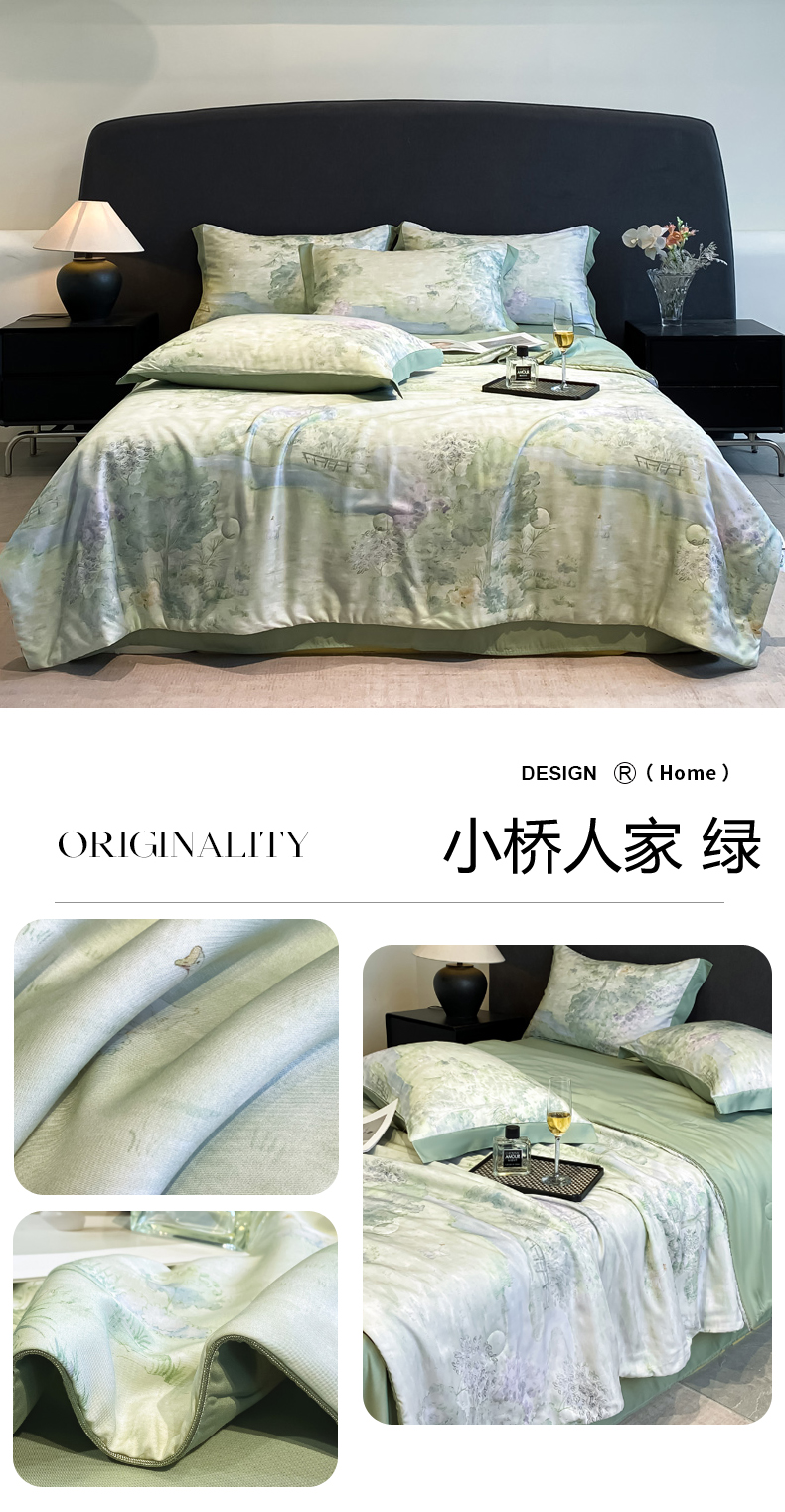 慕尚家纺 2025新款莱赛尔天丝夏被夏凉被空调被四件套 小桥人家 绿