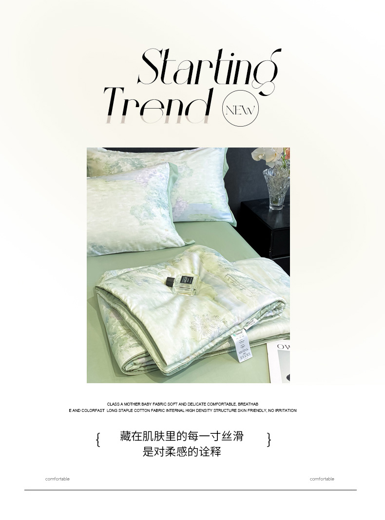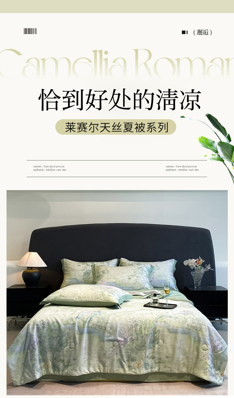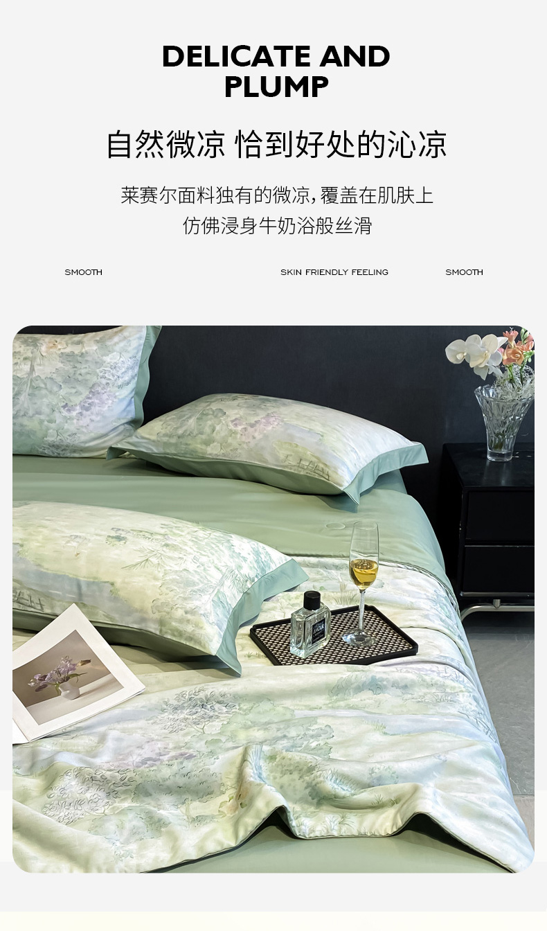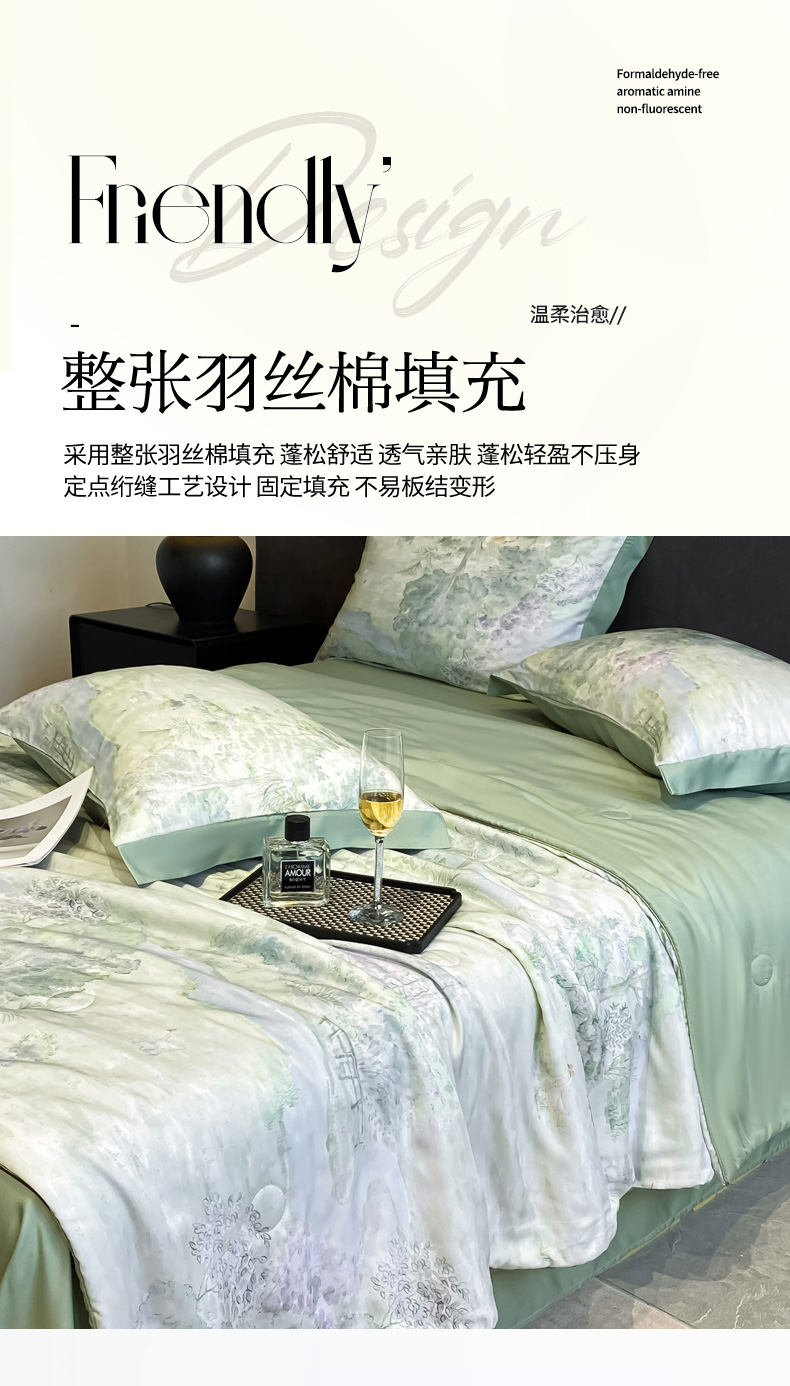 慕尚家纺 2025新款莱赛尔天丝夏被夏凉被空调被四件套 小桥人家 绿