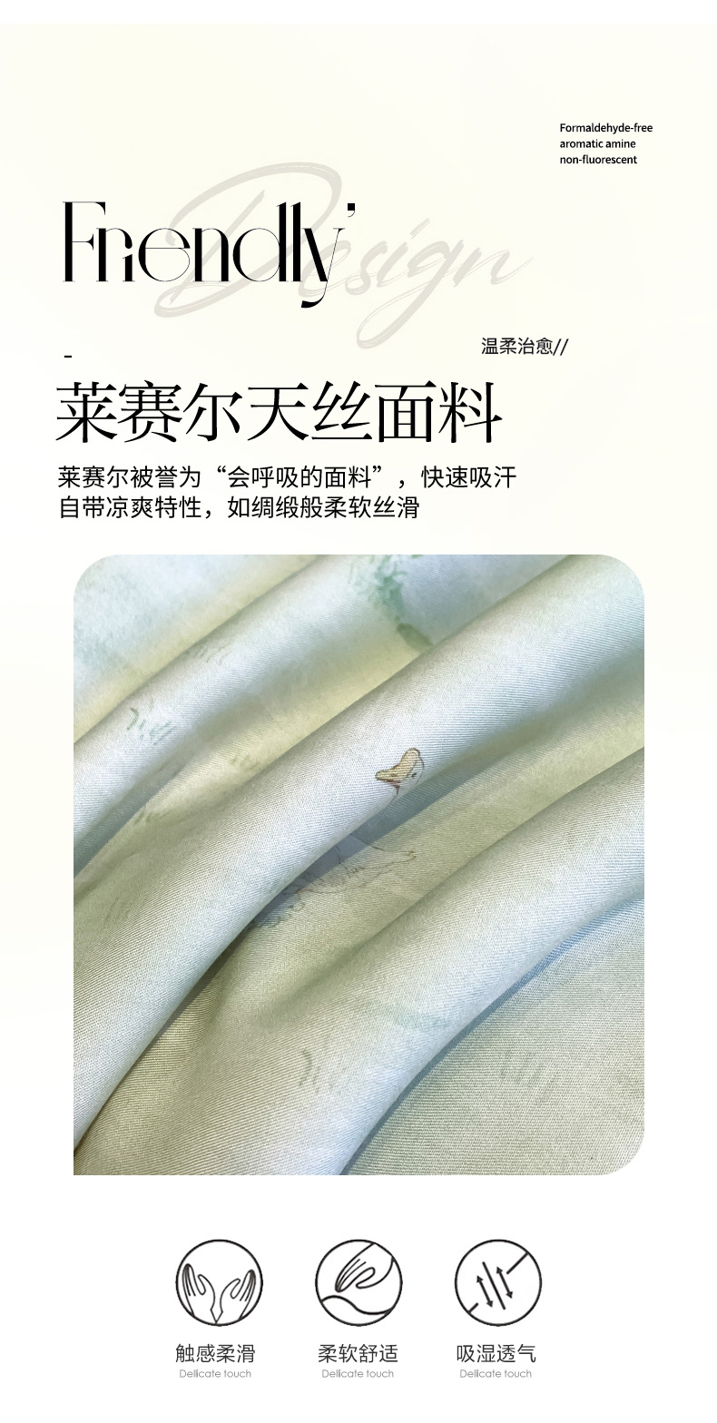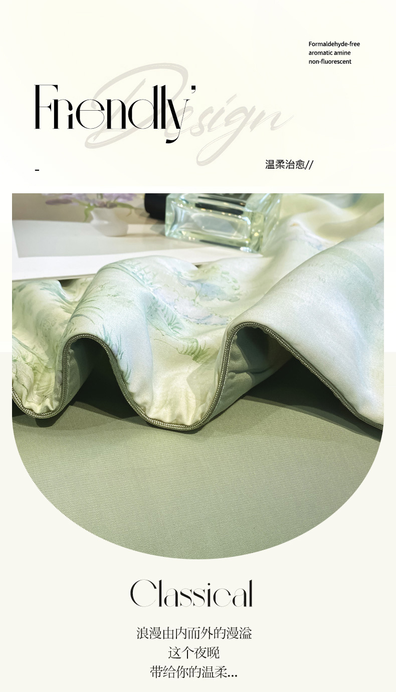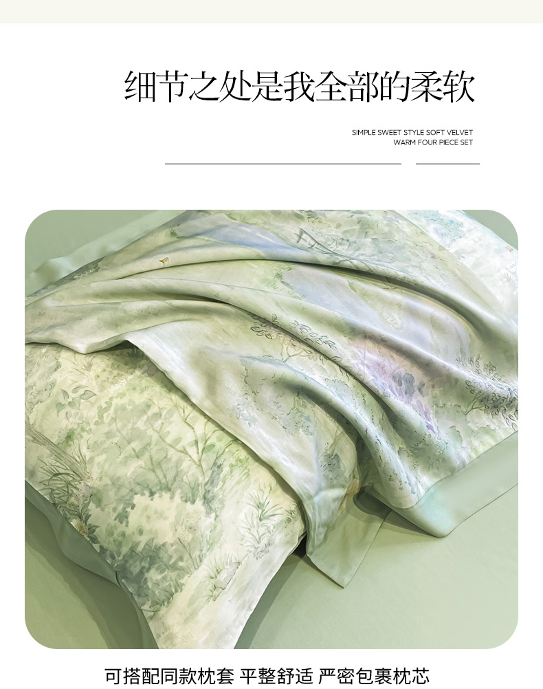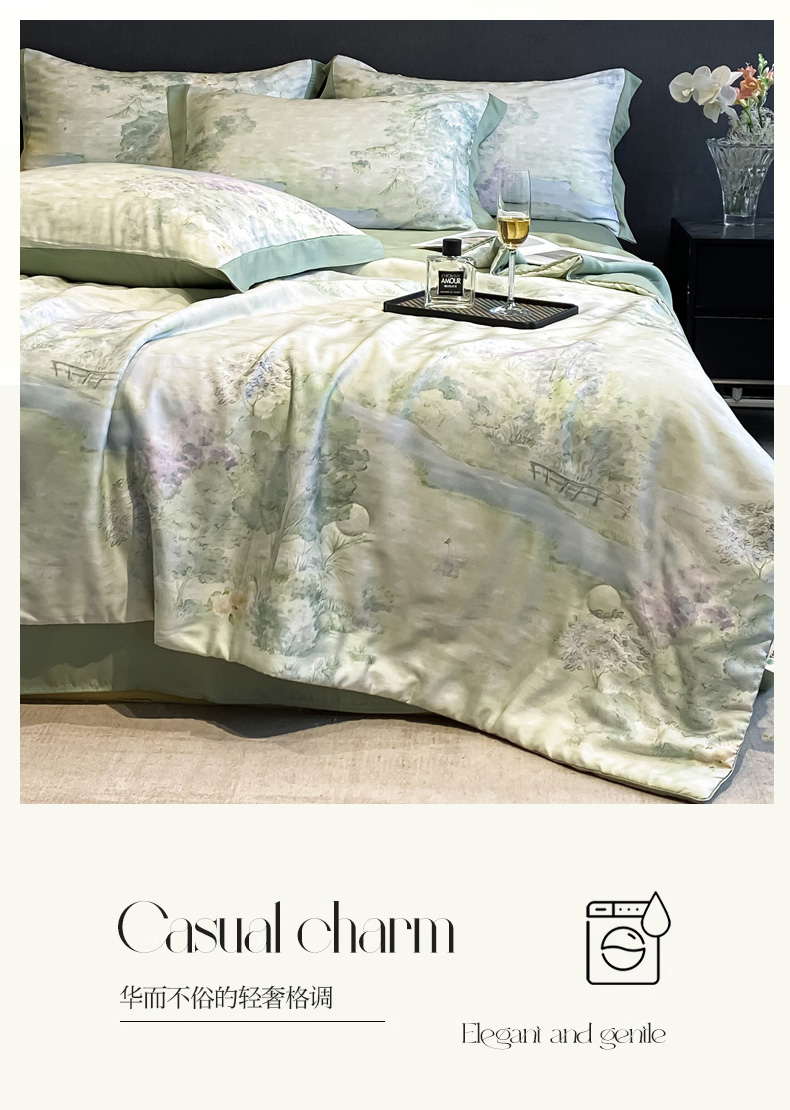 商品名称:慕尚家纺 2025新款莱赛尔天丝夏被夏凉被空调被四件套 小桥人家 绿