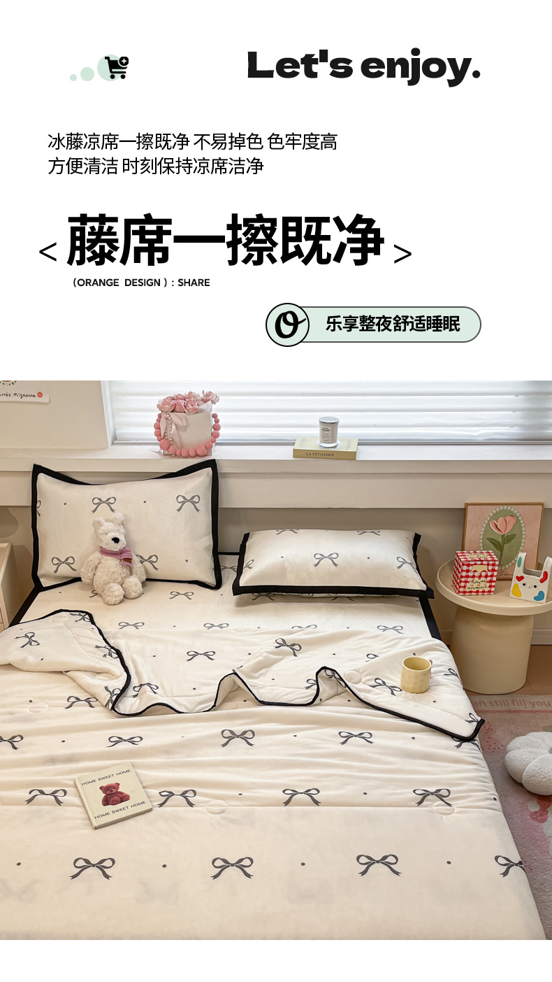 • 91家纺网 家纺一手货源 找家纺 慕澄家纺 2025新款真冰藤席子凉席夏被夏凉被空调被四件套 波点蝴蝶结