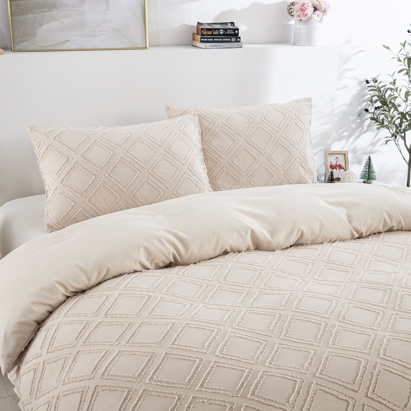 当前位置: 91家纺网 > 商品网购 > 跨境商品 > 床上用品(Bedding) > 床品套件(Bedding Comforter Sets) > 子不语家纺2025新款跨境外贸 剪花簇绒纯色三件套亚马逊Temu速卖 通Shein沃尔玛专供 菱形卡其