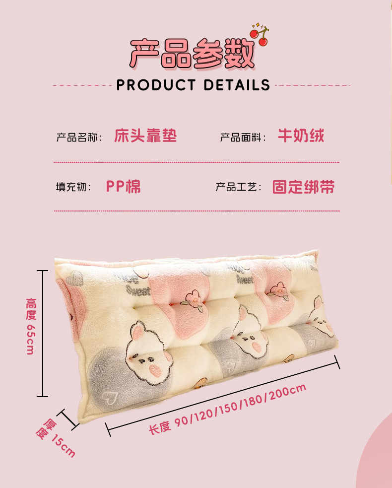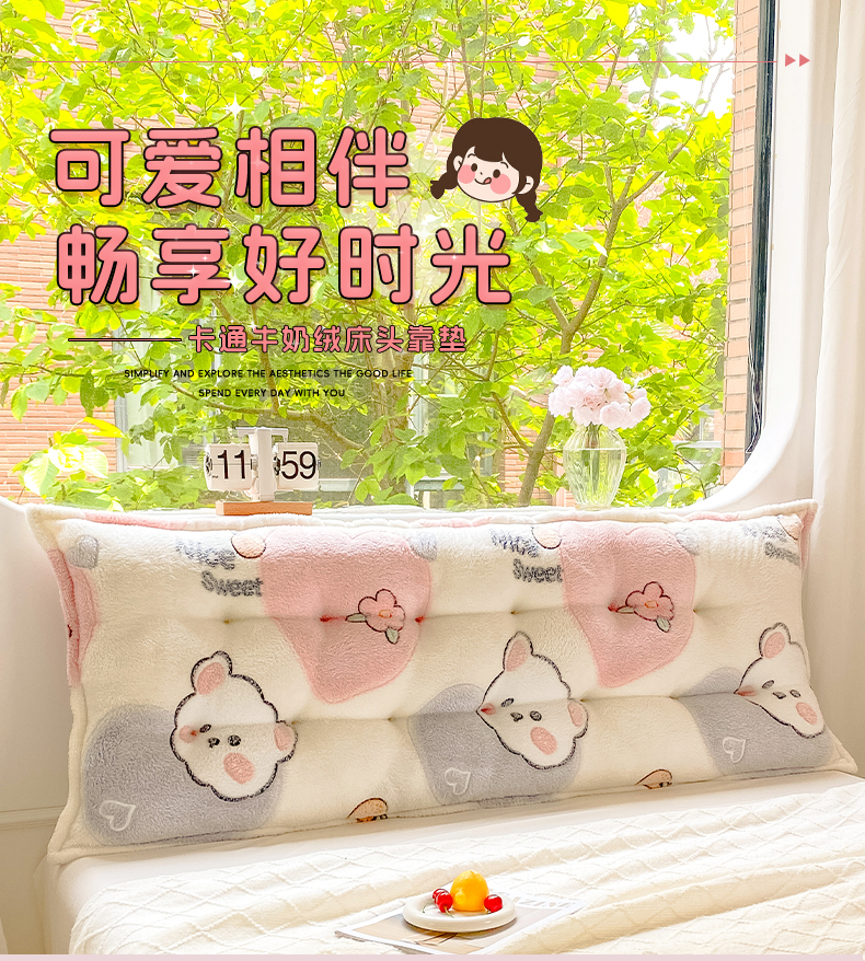 商品名称:碧尔 2025新款可爱儿童床头靠垫学生卧室客厅沙发飘窗榻榻米软包靠背床上靠枕双排扣直条机械钉扣牛奶绒 芋泥啵啵